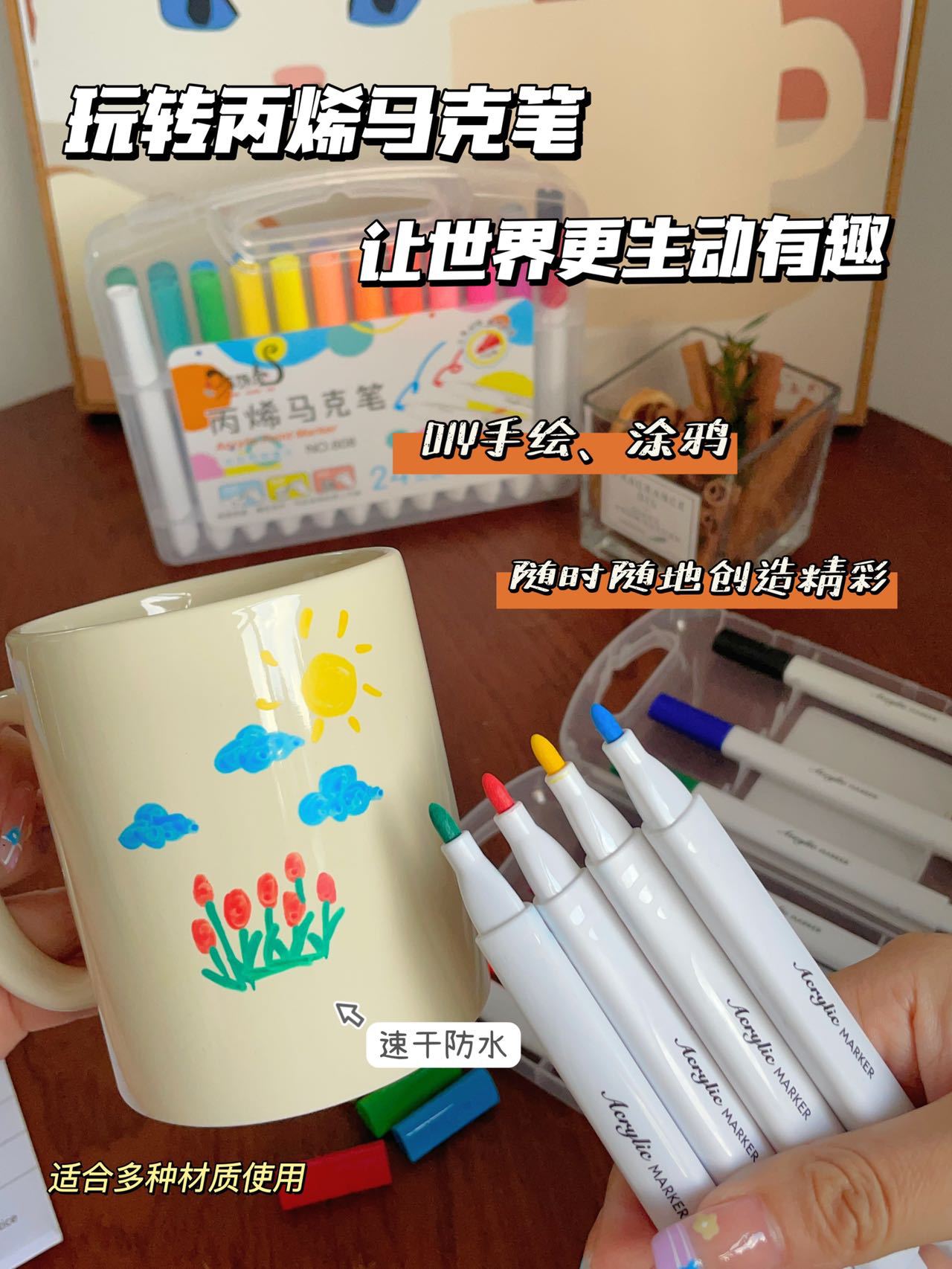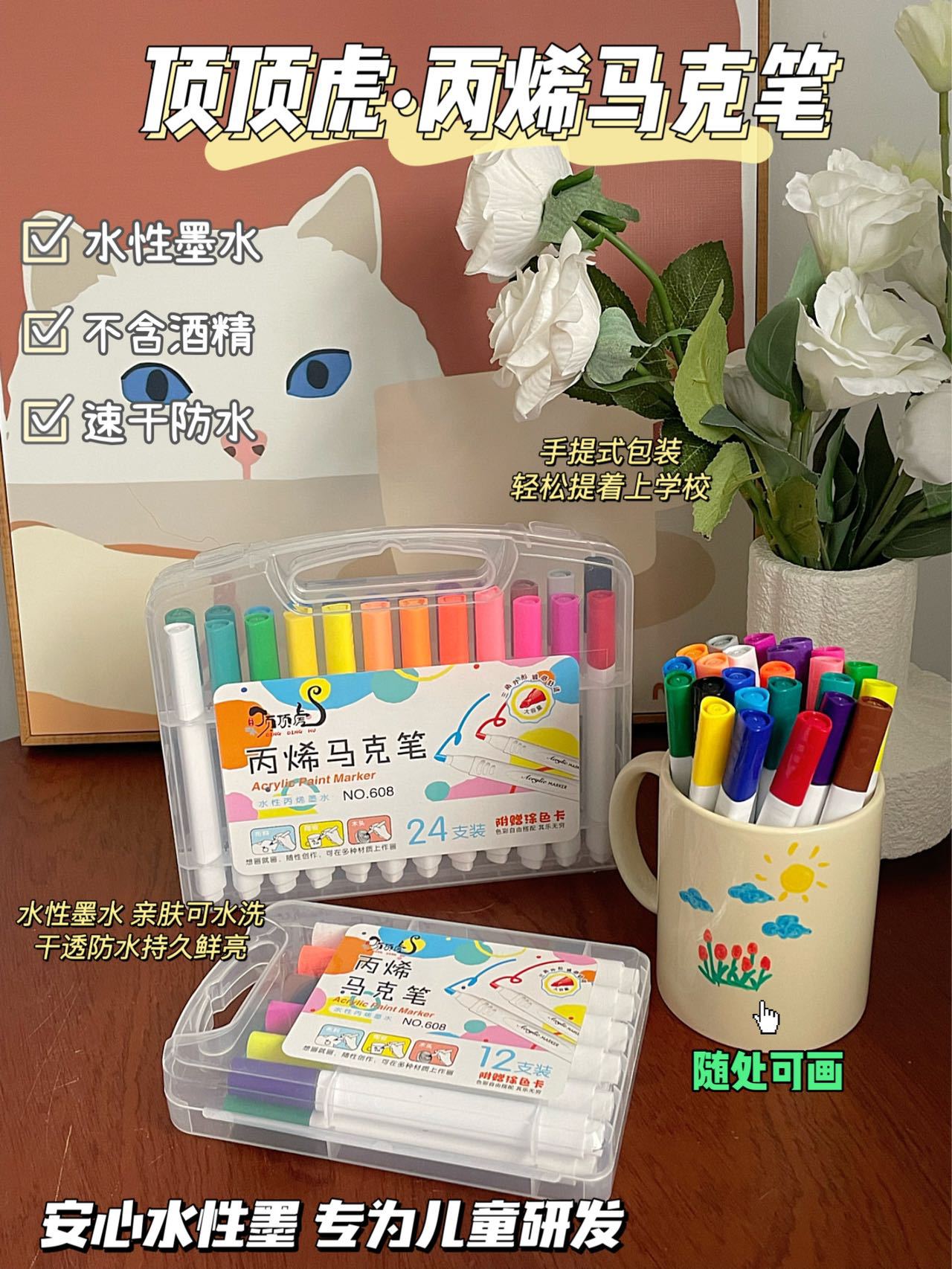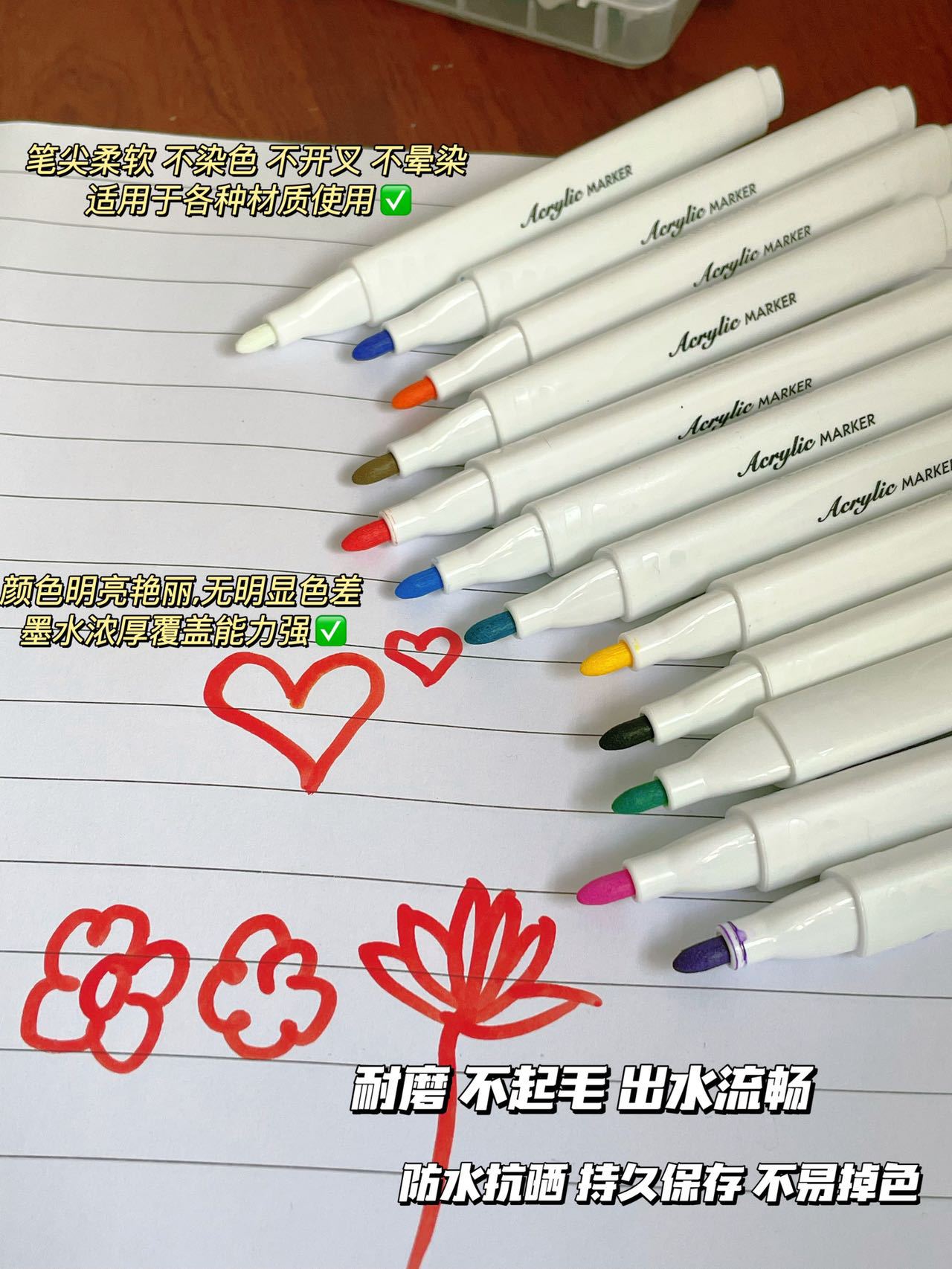 Marcadores acrílicos de 12 colores Tamaño de la caja: 52.5*44.5*41cm Cantidad de embalaje: 144 cajas