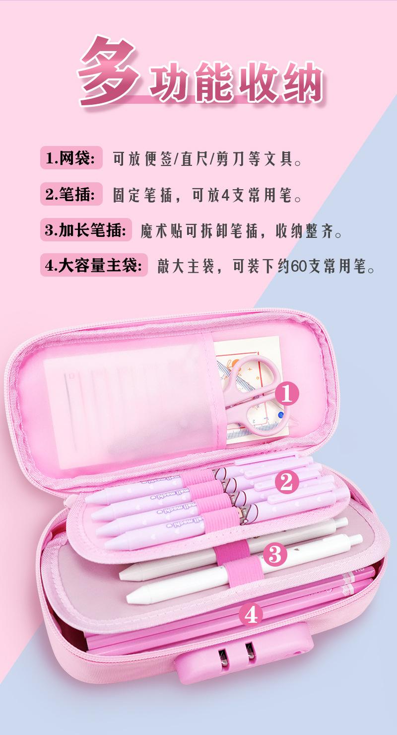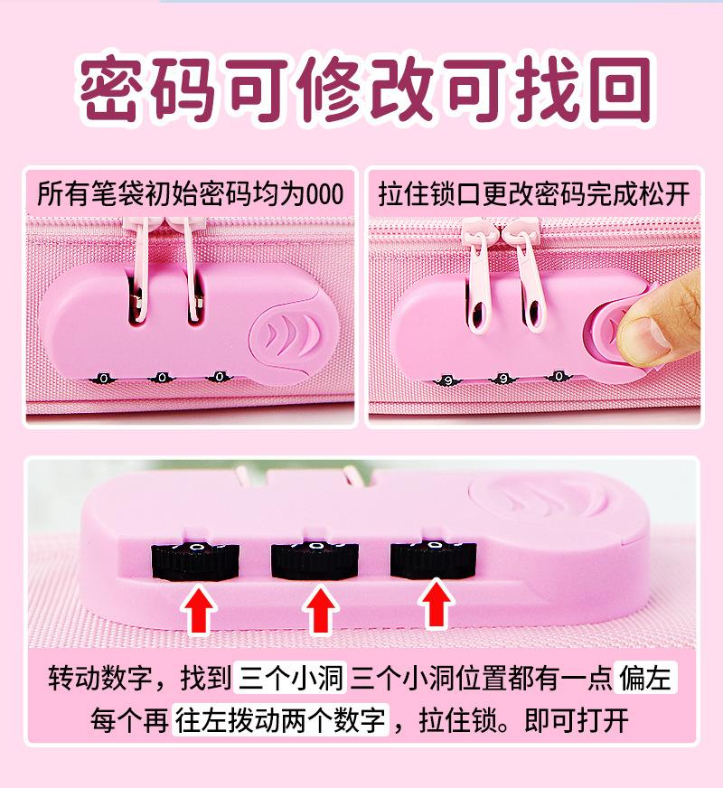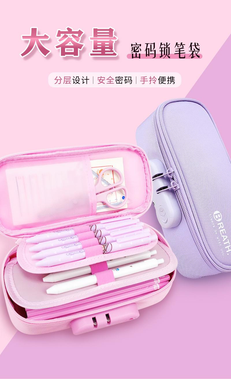 Estuche para bolígrafos de gran capacidad con cerradura de combinación especial transfronteriza, caja de papelería con logotipo impreso, estuche portátil para lápices, bolsa de papelería para niña
