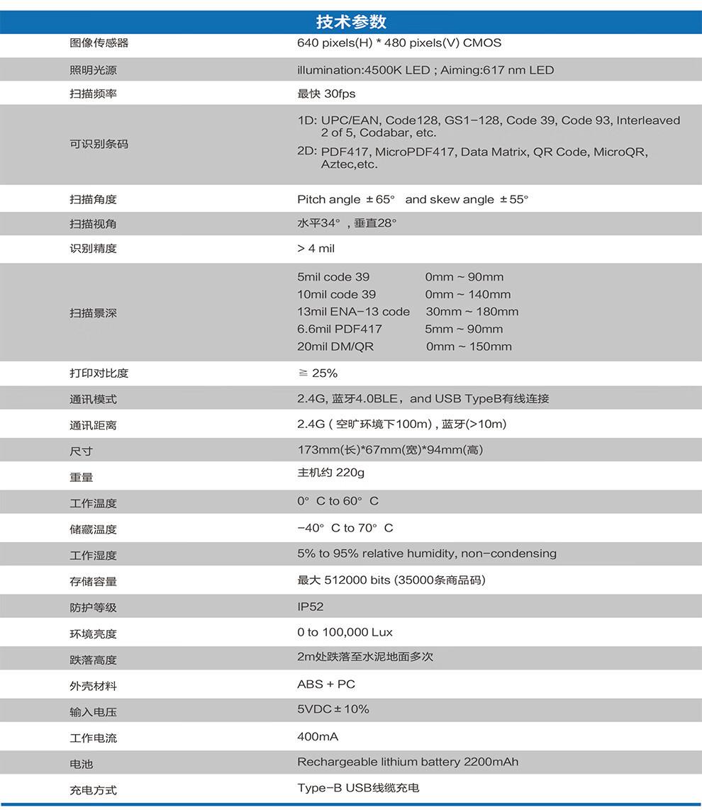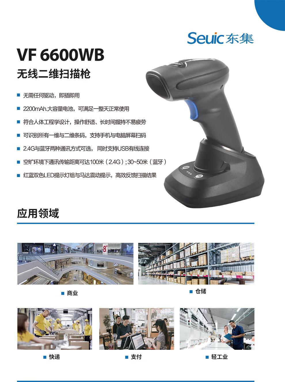 Seuic Dongji Vf6600Wb Pistola de Escaneo Bidimensional Inalámbrica Dongda Pistola de Escaneo de Código de Barras Bluetooth Integrada