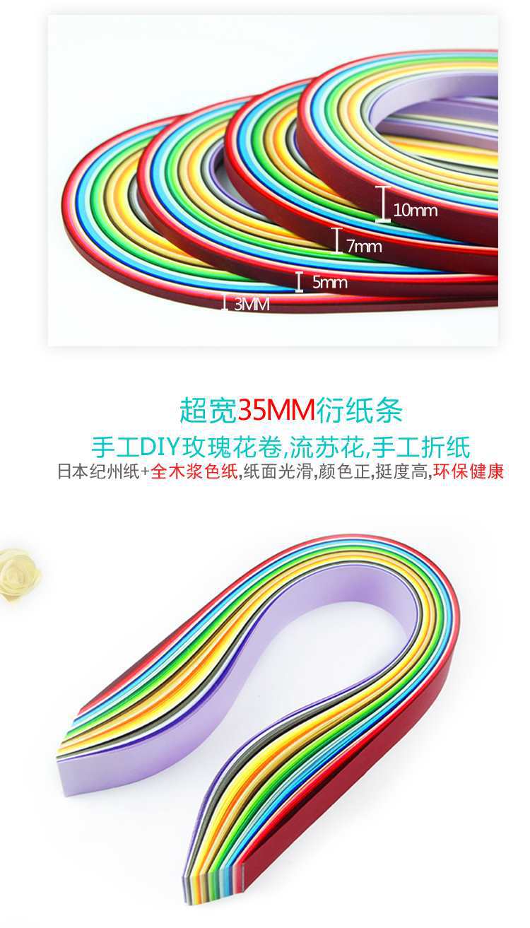 Rollo de tiras de papel de 36 colores para manualidades, tiras de papel de colores mixtos, súper anchas, 3 mm, 5 mm, 7 mm, 10 mm, 35 mm, 180 g