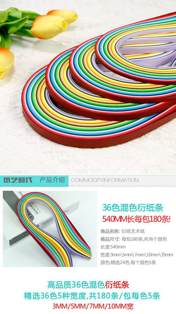 36 mixed color paper 3mm wide, 36 mixed color paper 5mm wide, 36 mixed color derivative paper 7mm wide, 36 mix...
