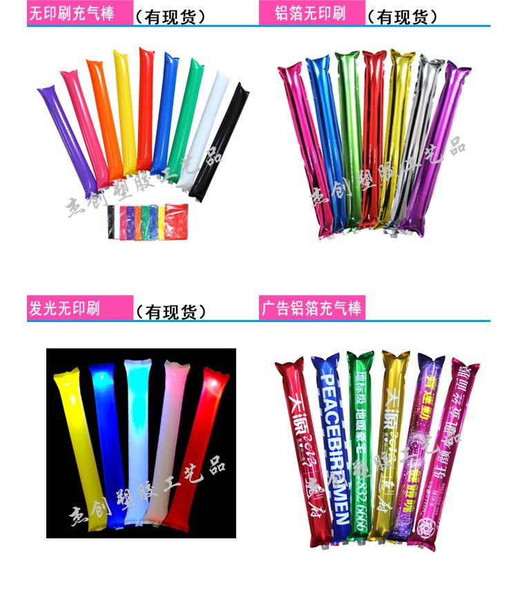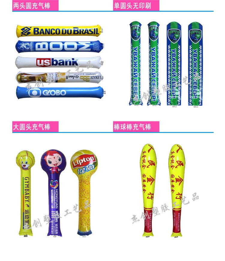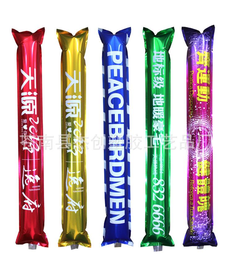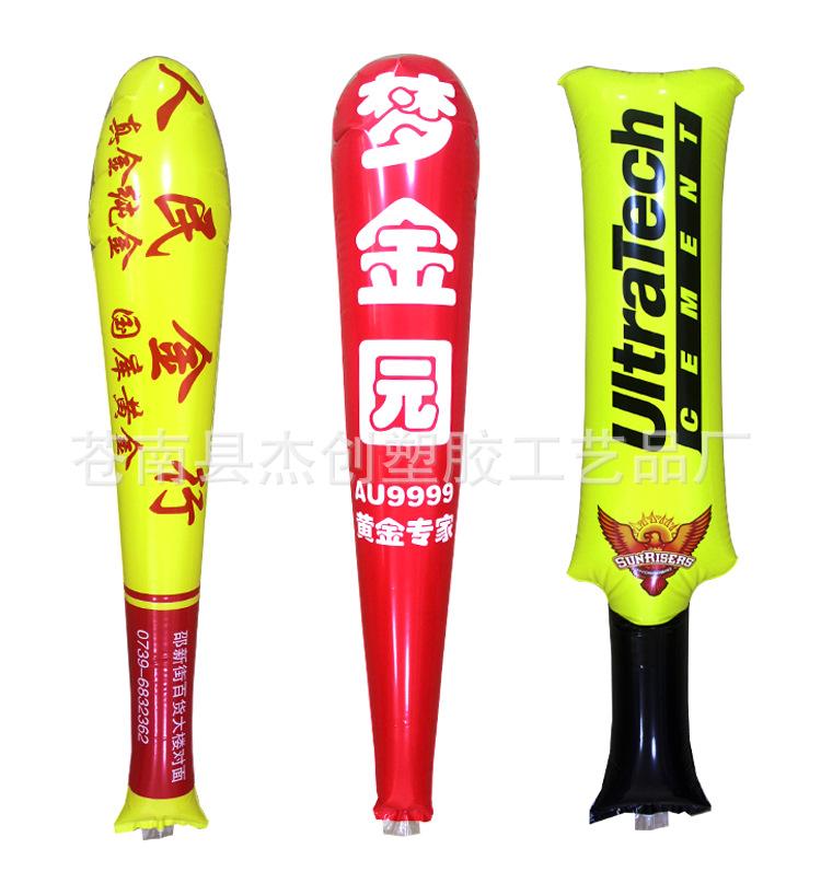 Los palos inflables de plástico están hechos de HDPE (polietileno de alta presión). Al inflarse, chocan entre sí para formar metal.