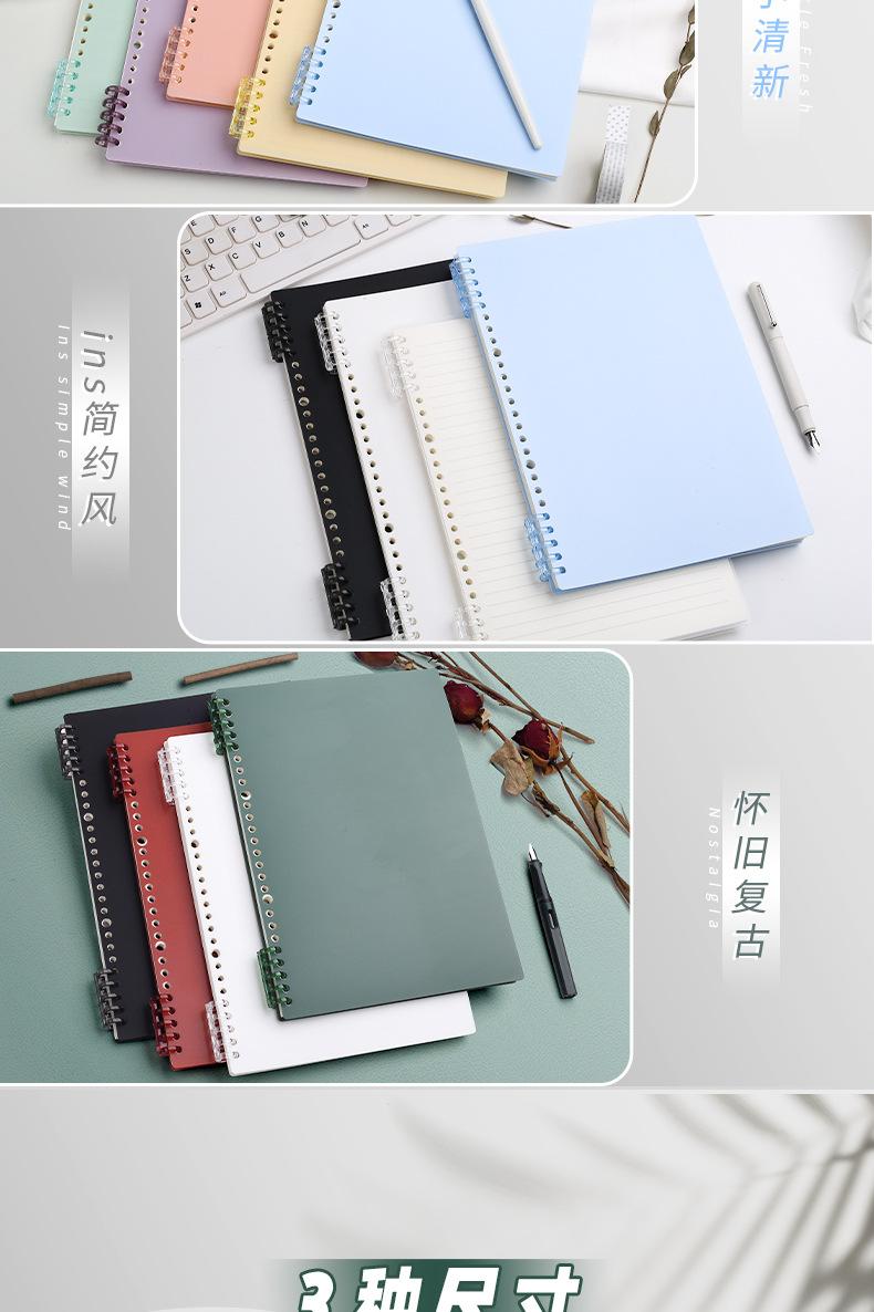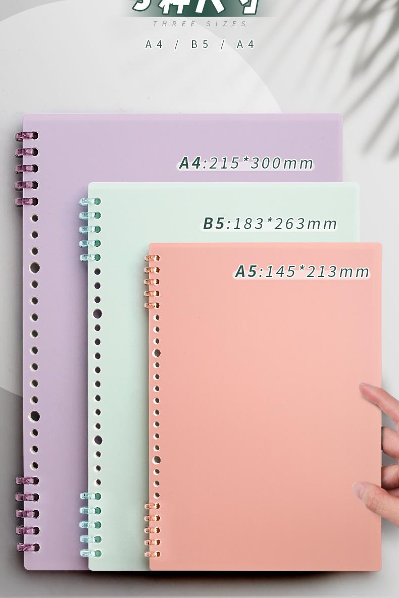 Libreta de hojas sueltas sin mano, extraíble, con hebilla, para estudiantes universitarios, tamaño A4, con espiral horizontal, cuadrada pequeña