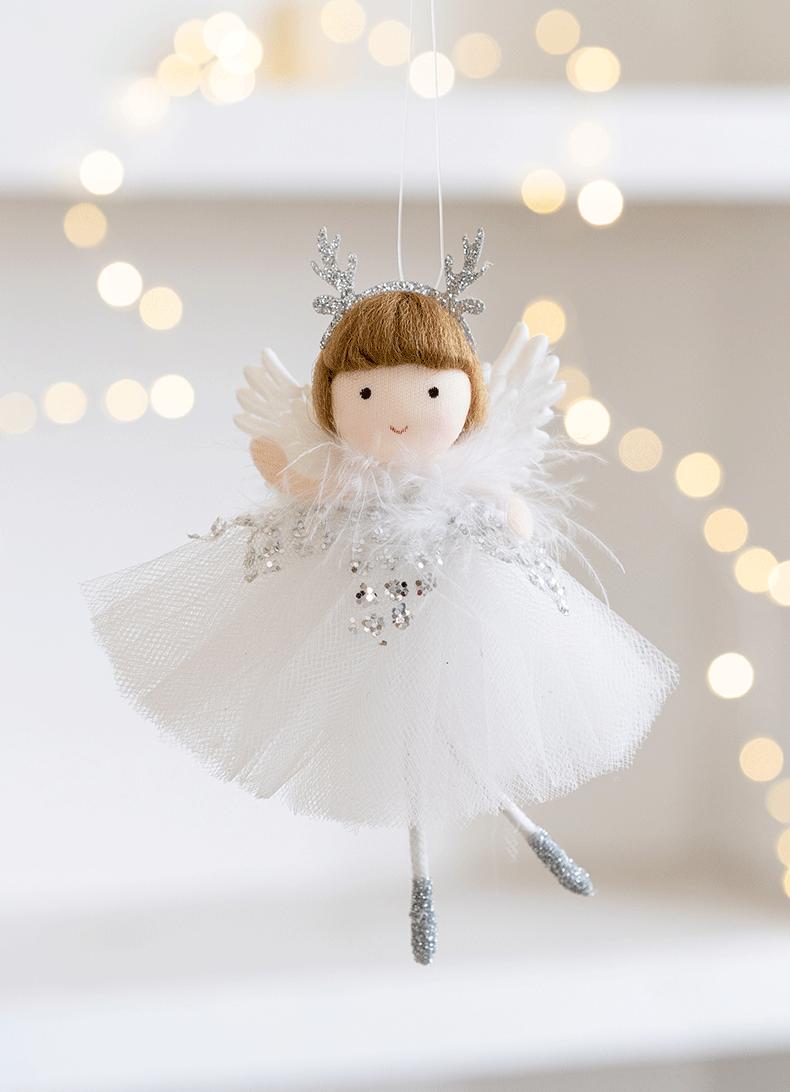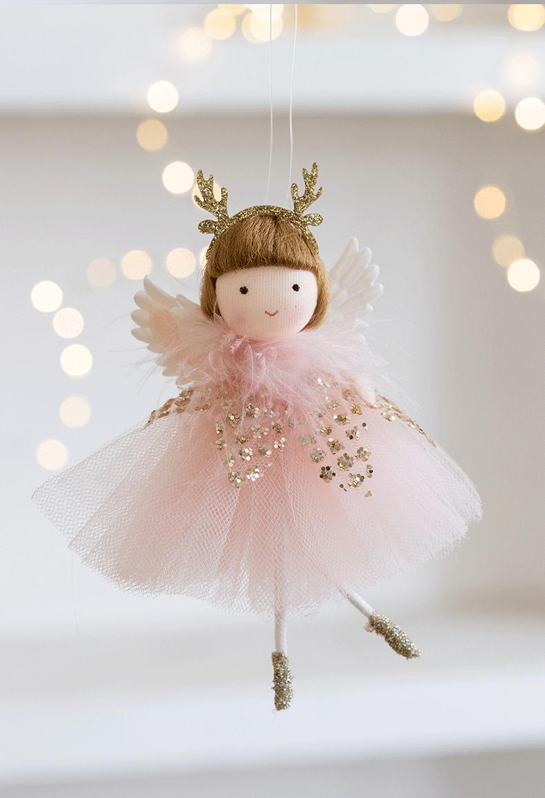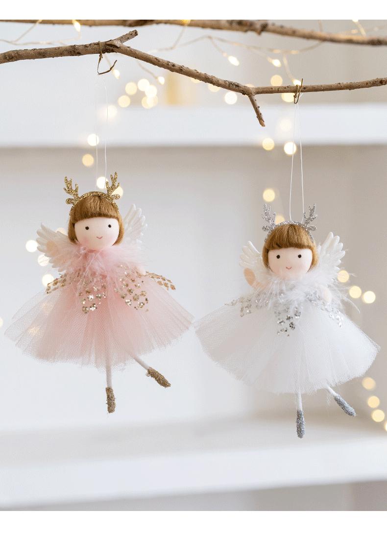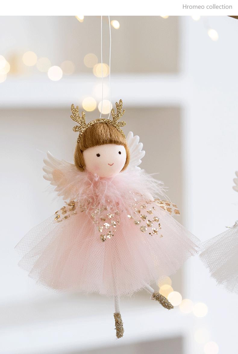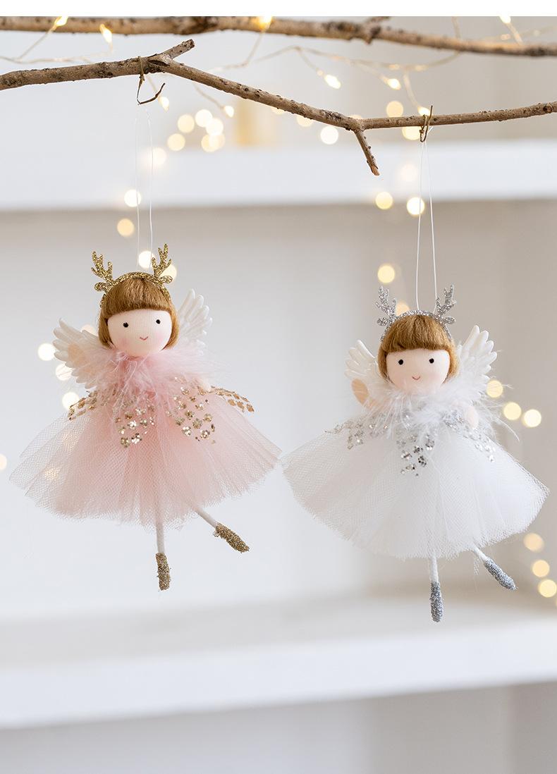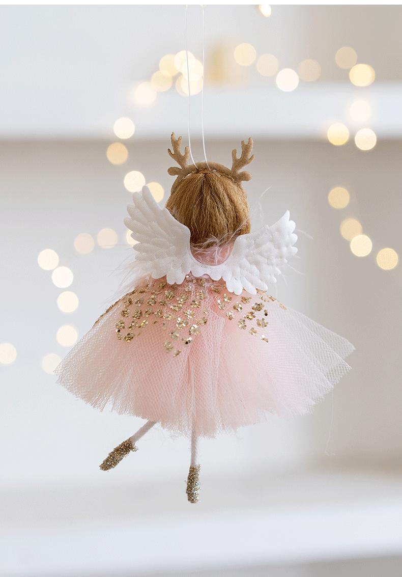 Nuevo producto transfronterizo: falda de malla navideña con colgante de niña y astas de ángel, decoración para árbol de Navidad.