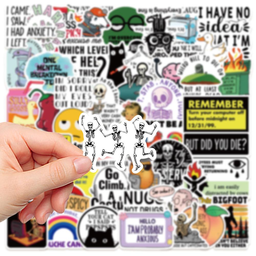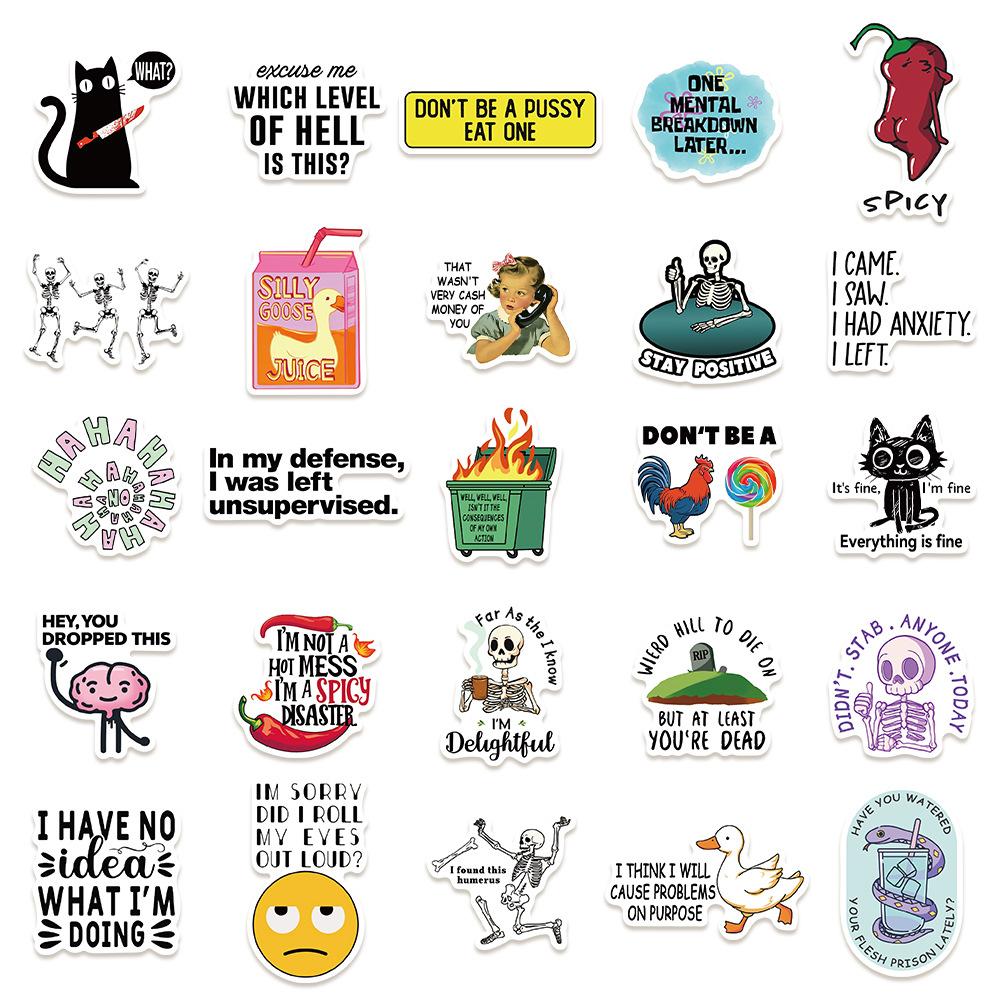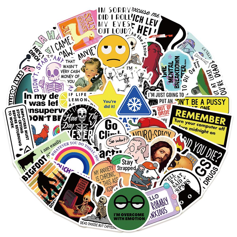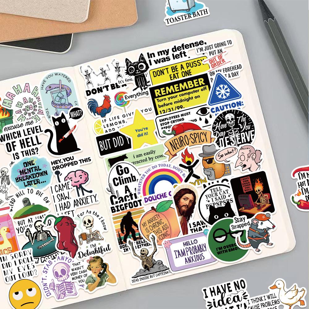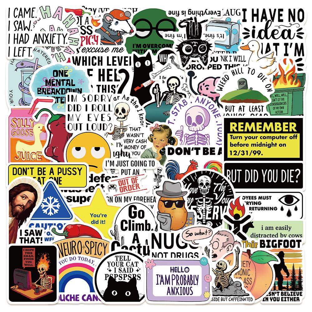 50 hojas de pegatinas de grafiti con memes sarcásticos de dibujos animados, pegatinas decorativas para guitarra, portátil, equipaje, material de bricolaje