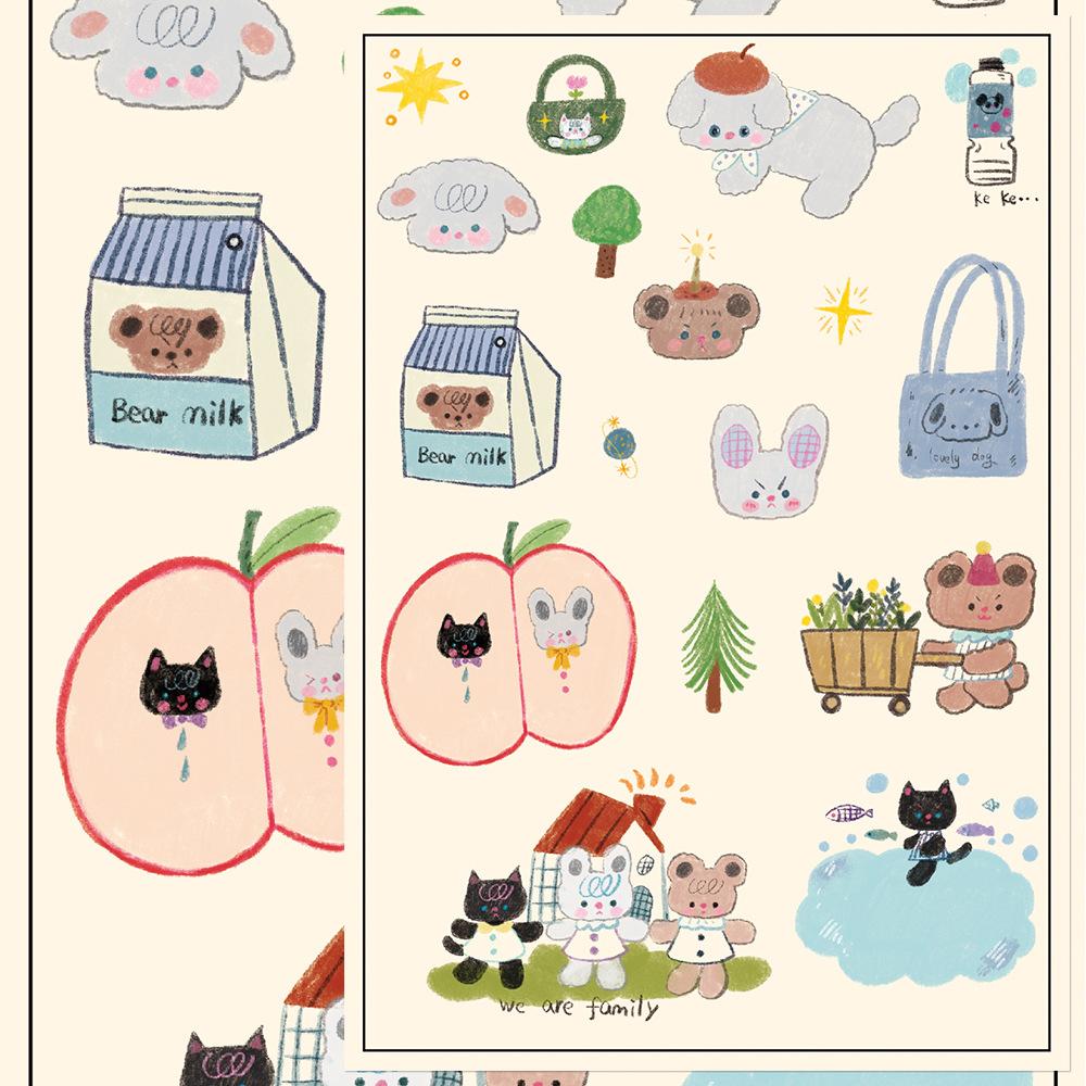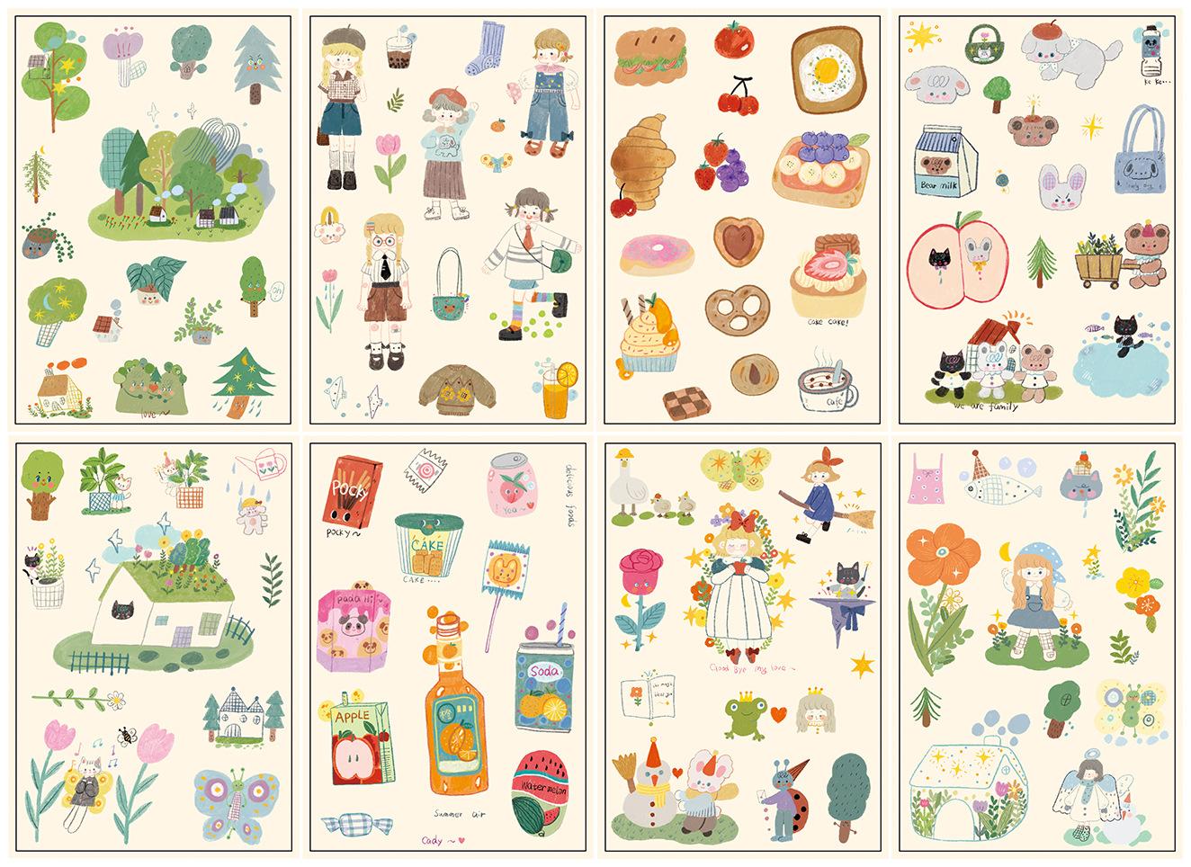 8 Pegatinas de monigotes coreanos DIY para cuenta de mano, tarjeta pequeña, decoración de carcasa de teléfono móvil, pegatinas de material para cuenta de mano coreana ins