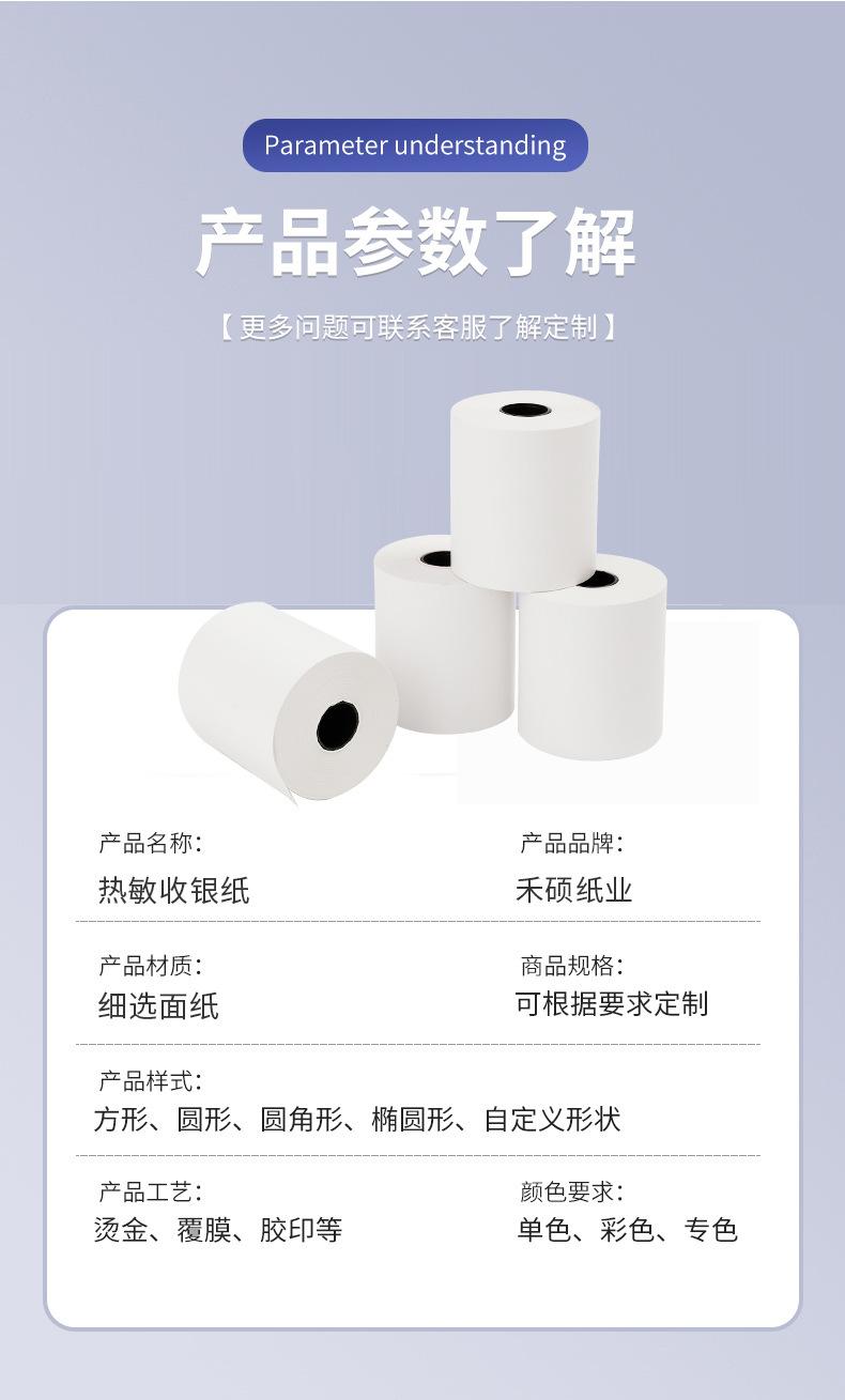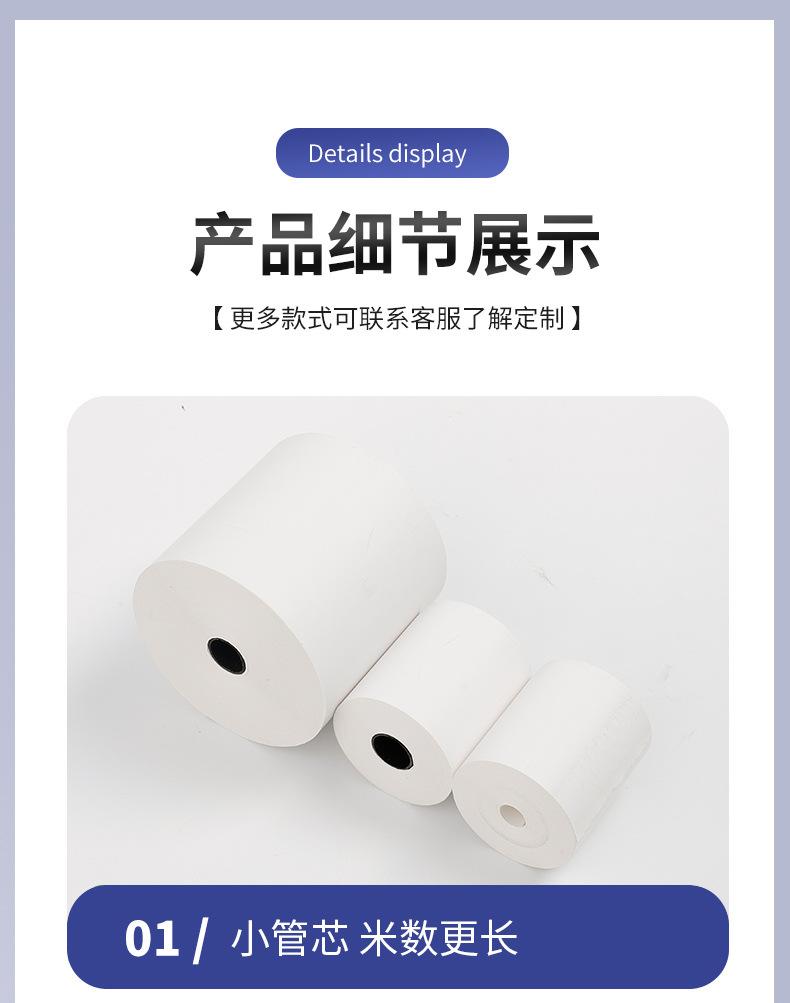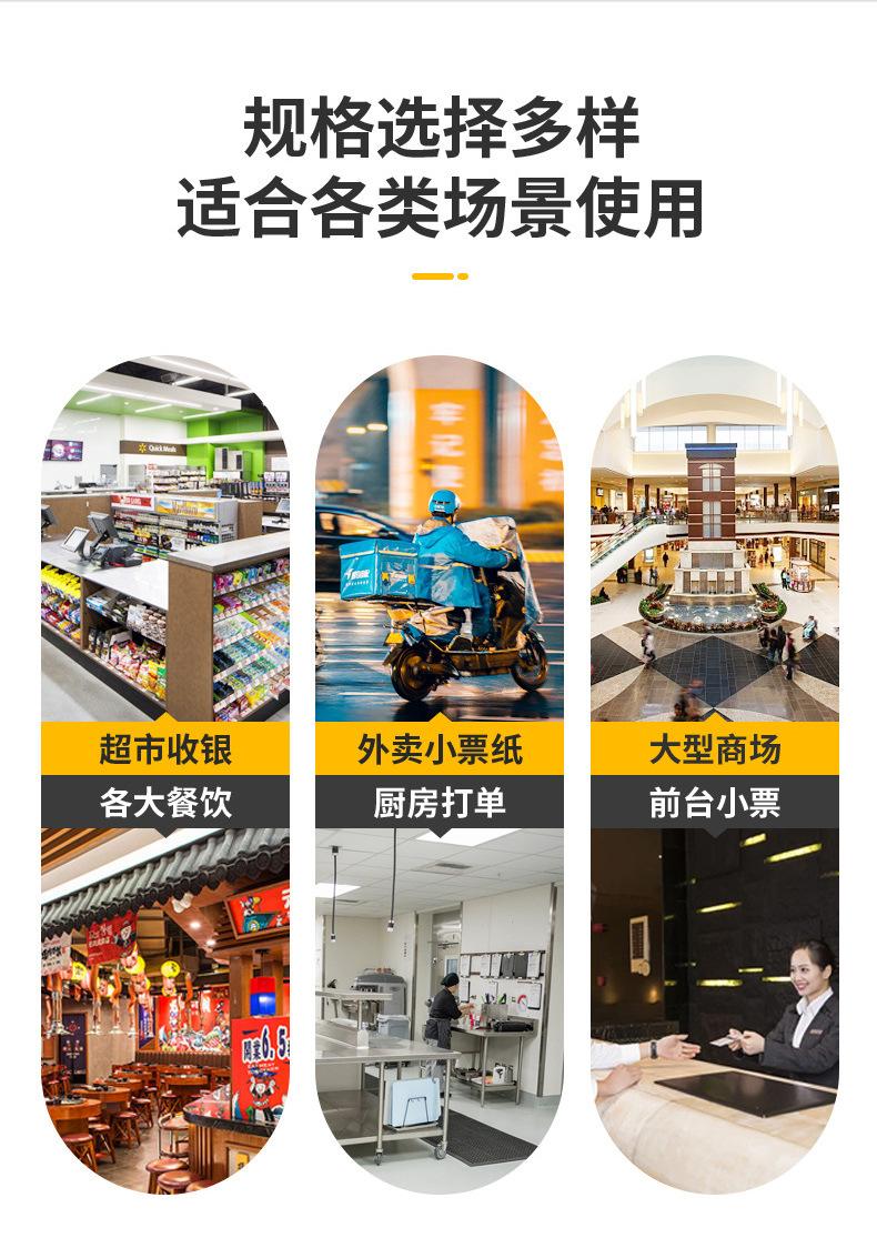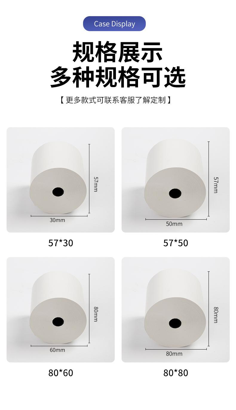 Papel térmico para caja registradora de 80 x 80, papel para caja registradora de supermercado de 80 x 60, papel para impresión de comida para llevar, papel para recibos bancarios y llamadas.