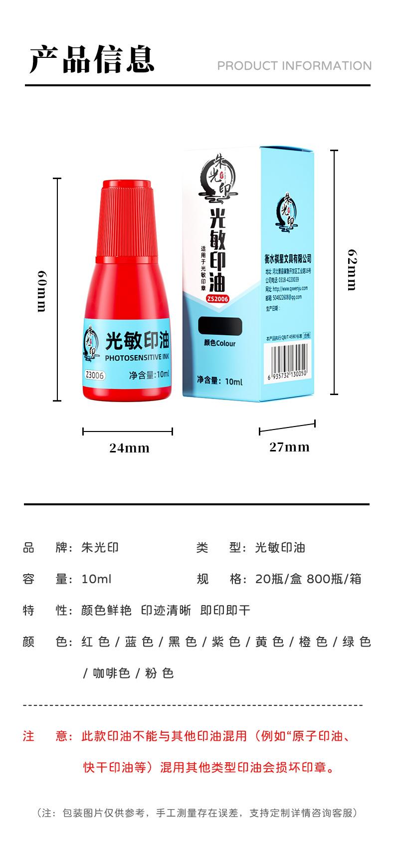 [Zhu Guangyin] Qixing 10ml tinta para sello fotosensible color sol secado rápido tinta suplementaria consumibles para sello fotosensible