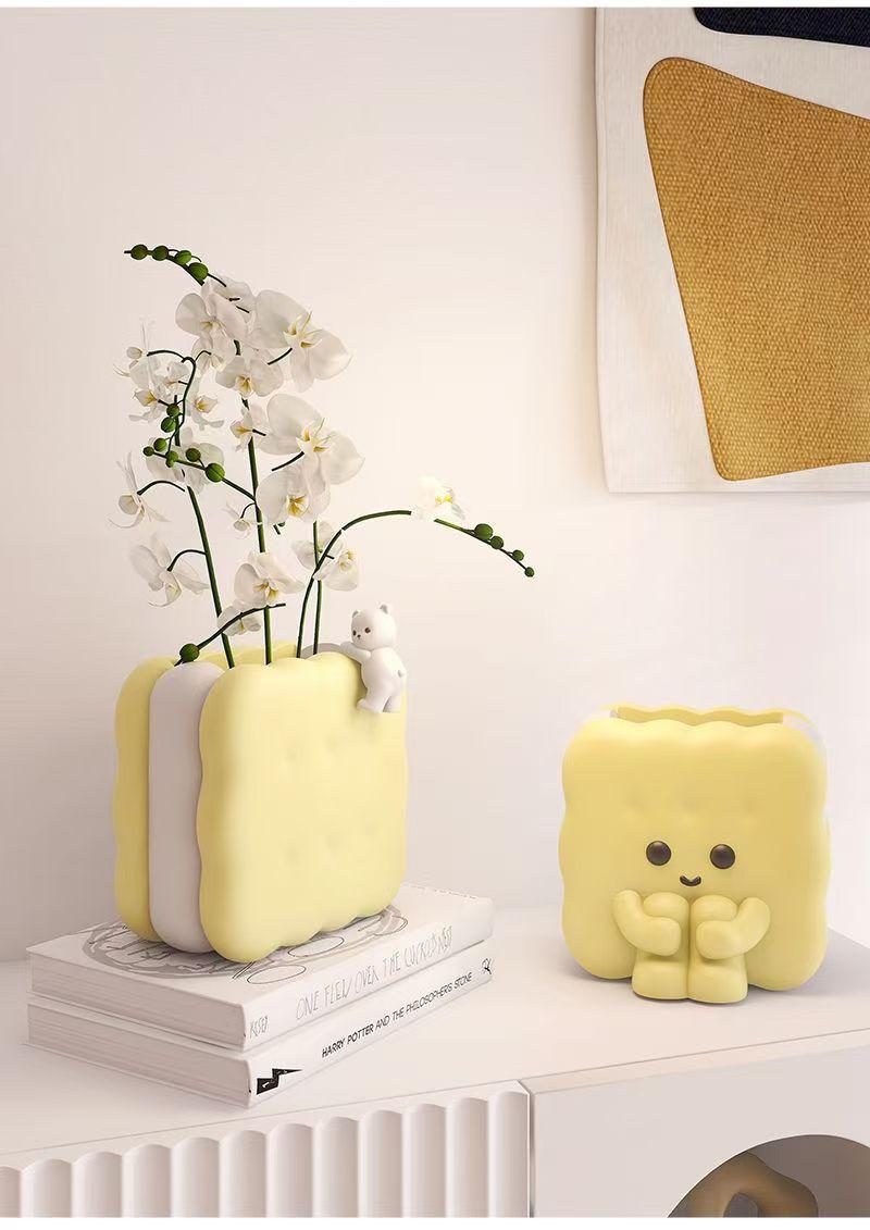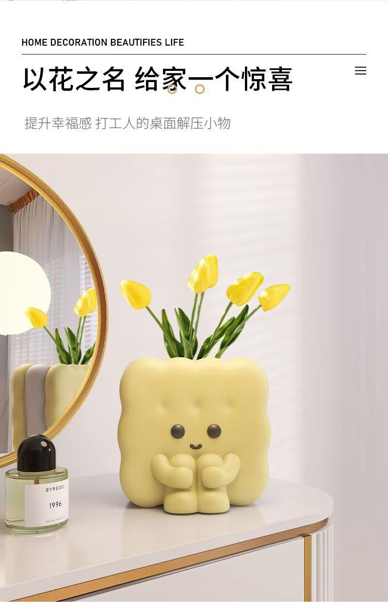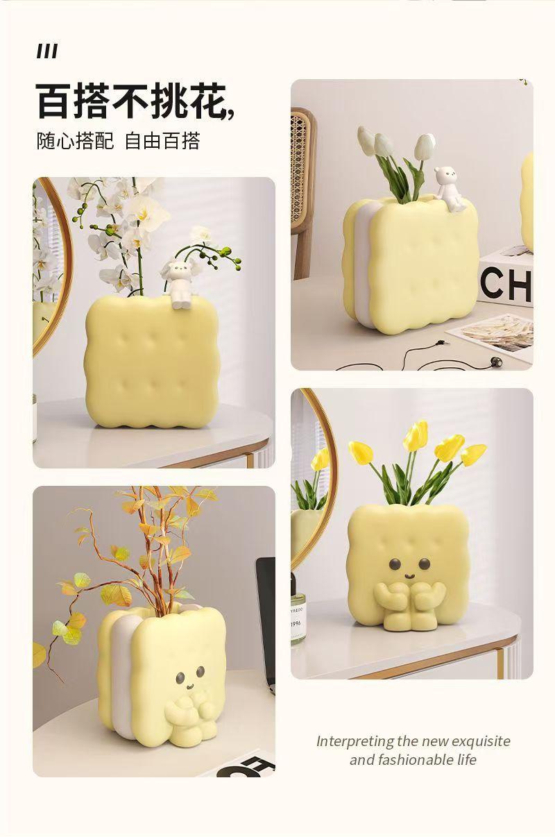 Jarrón de galletas original de estilo amoroso, nuevo estilo, arreglos florales de dibujos animados, adornos de almacenamiento, decoración para el hogar, la sala de estar y la mesa de centro.
