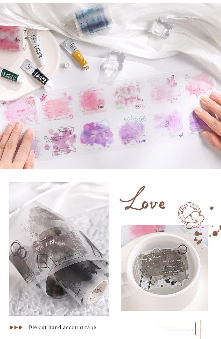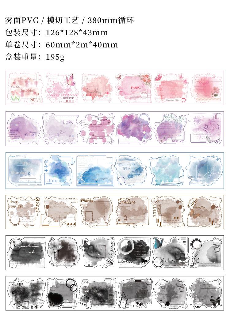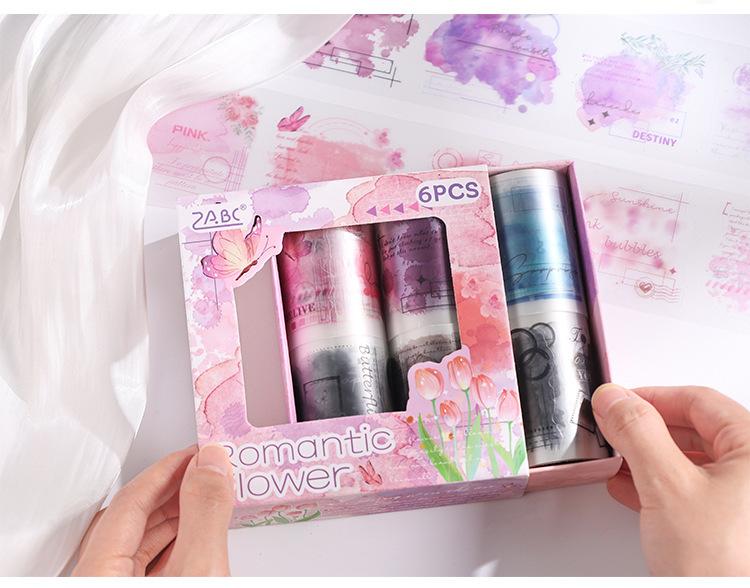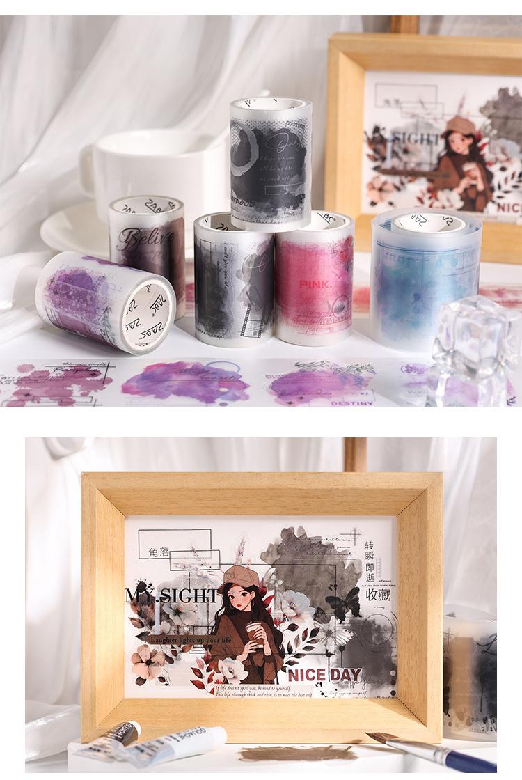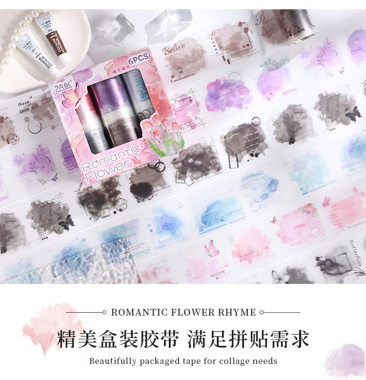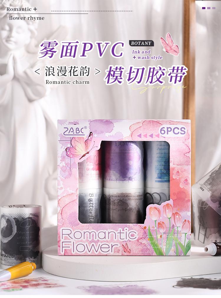 Cinta de PVC con diseño de flores románticas, serie Rima, en caja, con niebla, material de personaje de fantasía exquisito, tarjeta Goo con cuenta manual, pegatina decorativa para bricolaje