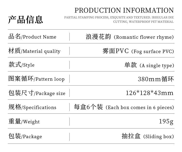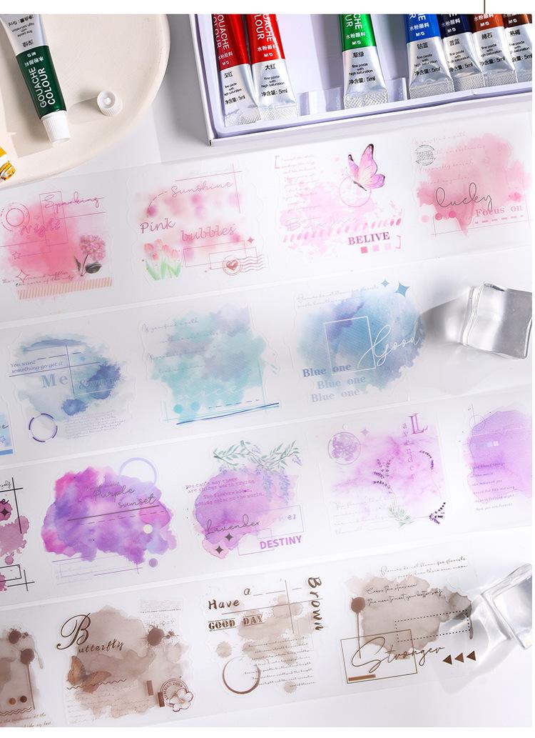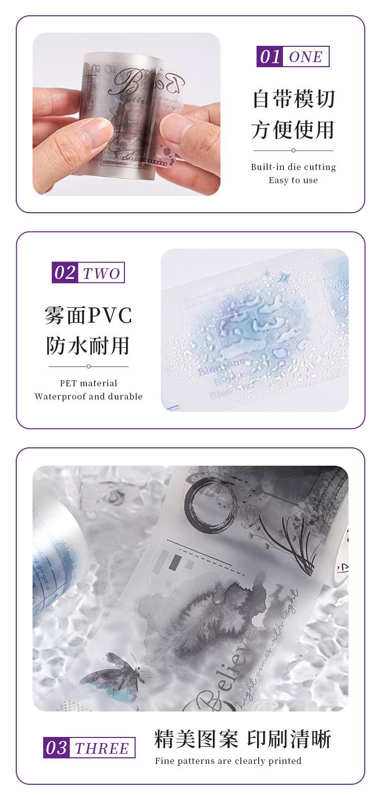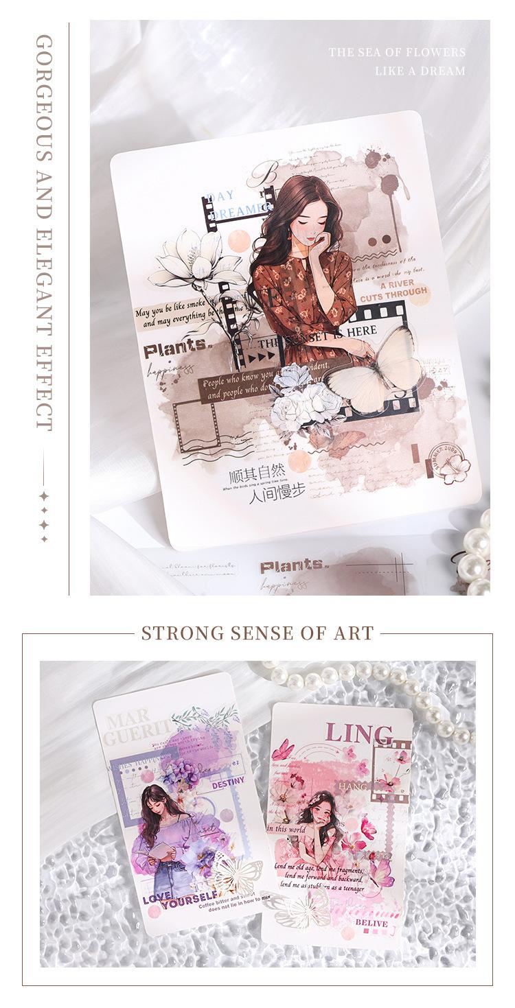 Cinta de PVC con diseño de flores románticas, serie Rima, en caja, con niebla, material de personaje de fantasía exquisito, tarjeta Goo con cuenta manual, pegatina decorativa para bricolaje