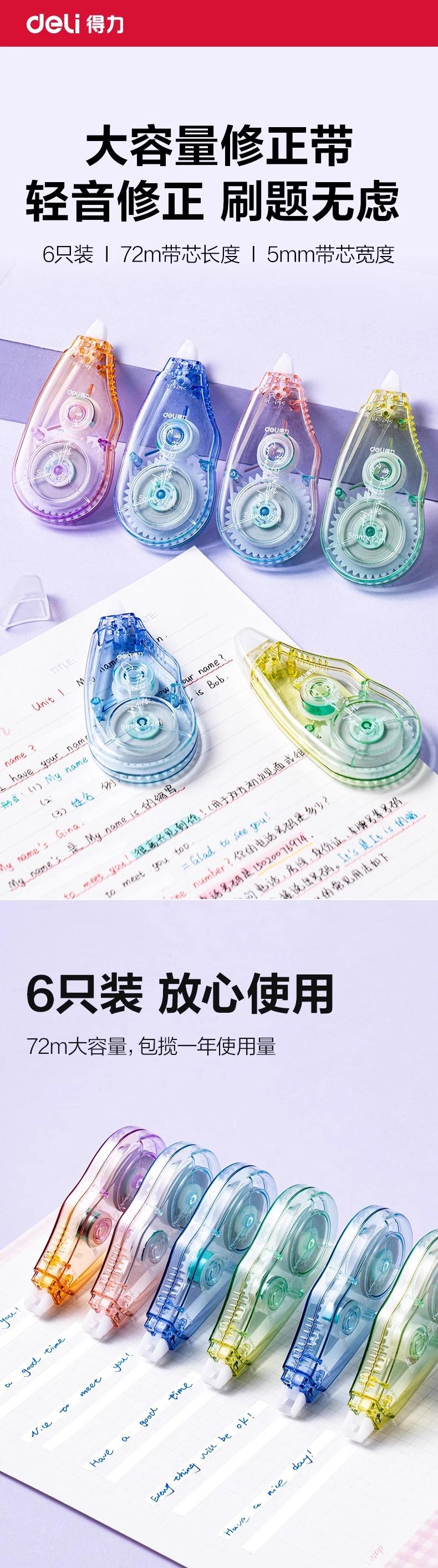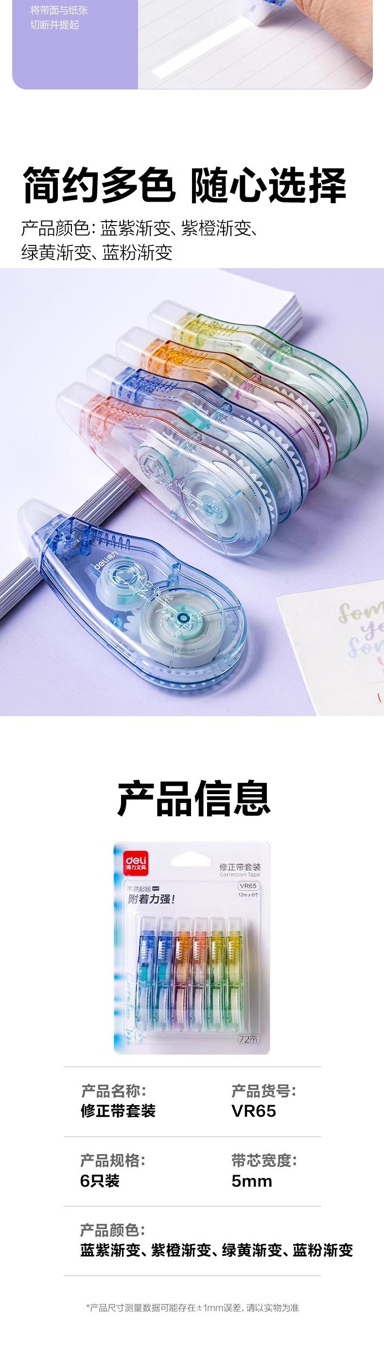 Cinta correctora Deli VR65 estudiante asequible suave sonido ligero mudo gran capacidad cinta correctora cinta correctora de color