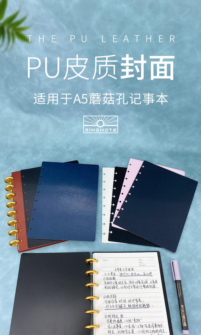 Cuaderno A5 personalizado de cuero sintético, bloc de notas con tapa de repuesto de doble cara, tapa de hojas sueltas con agujero en forma de hongo