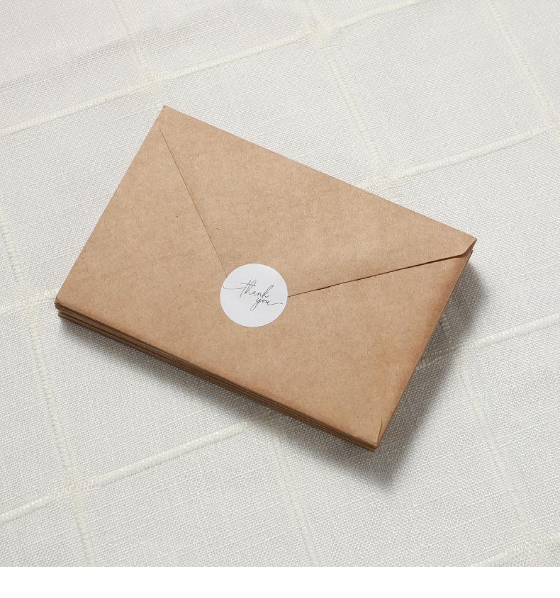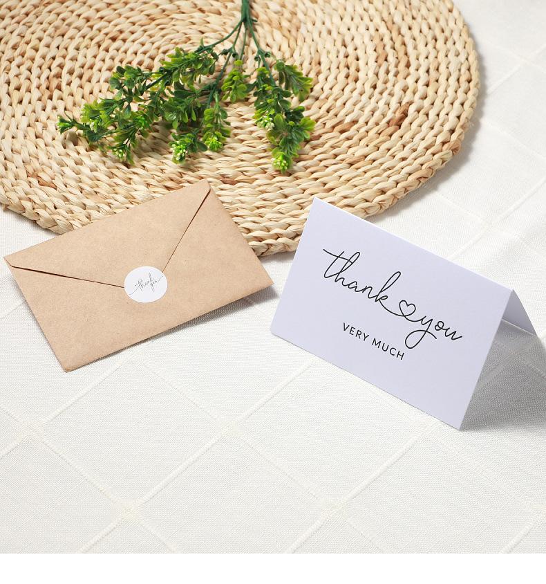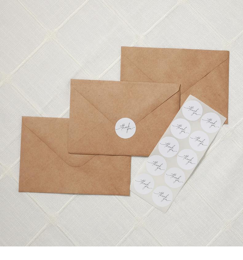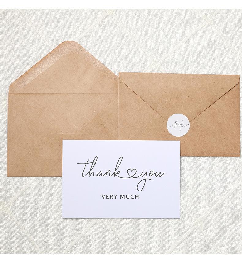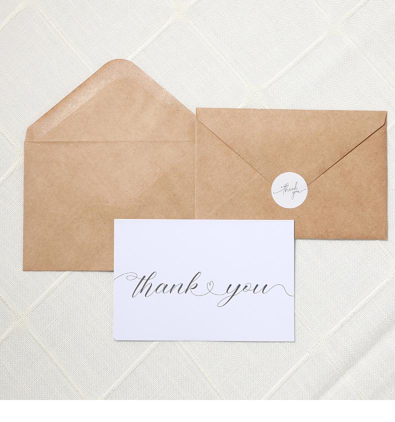 Sobre de Papel Kraft Manuscrito de Comercio Exterior Gracias Tarjeta de Agradecimiento Juego de Pegatinas de Sello a Juego Tarjeta Regalo Sencillo