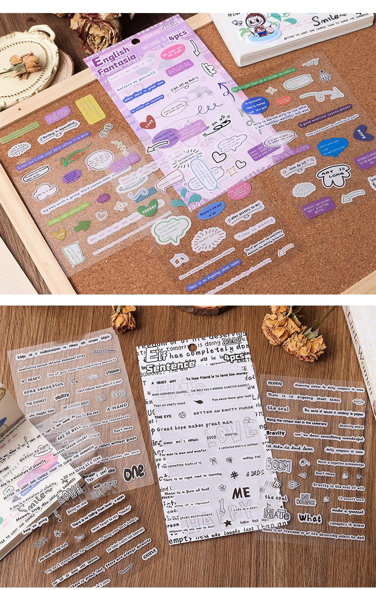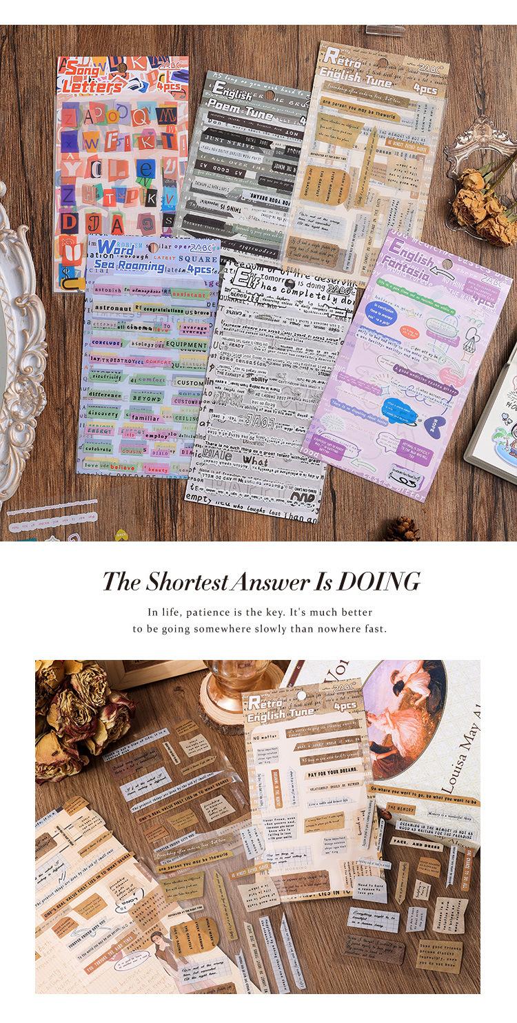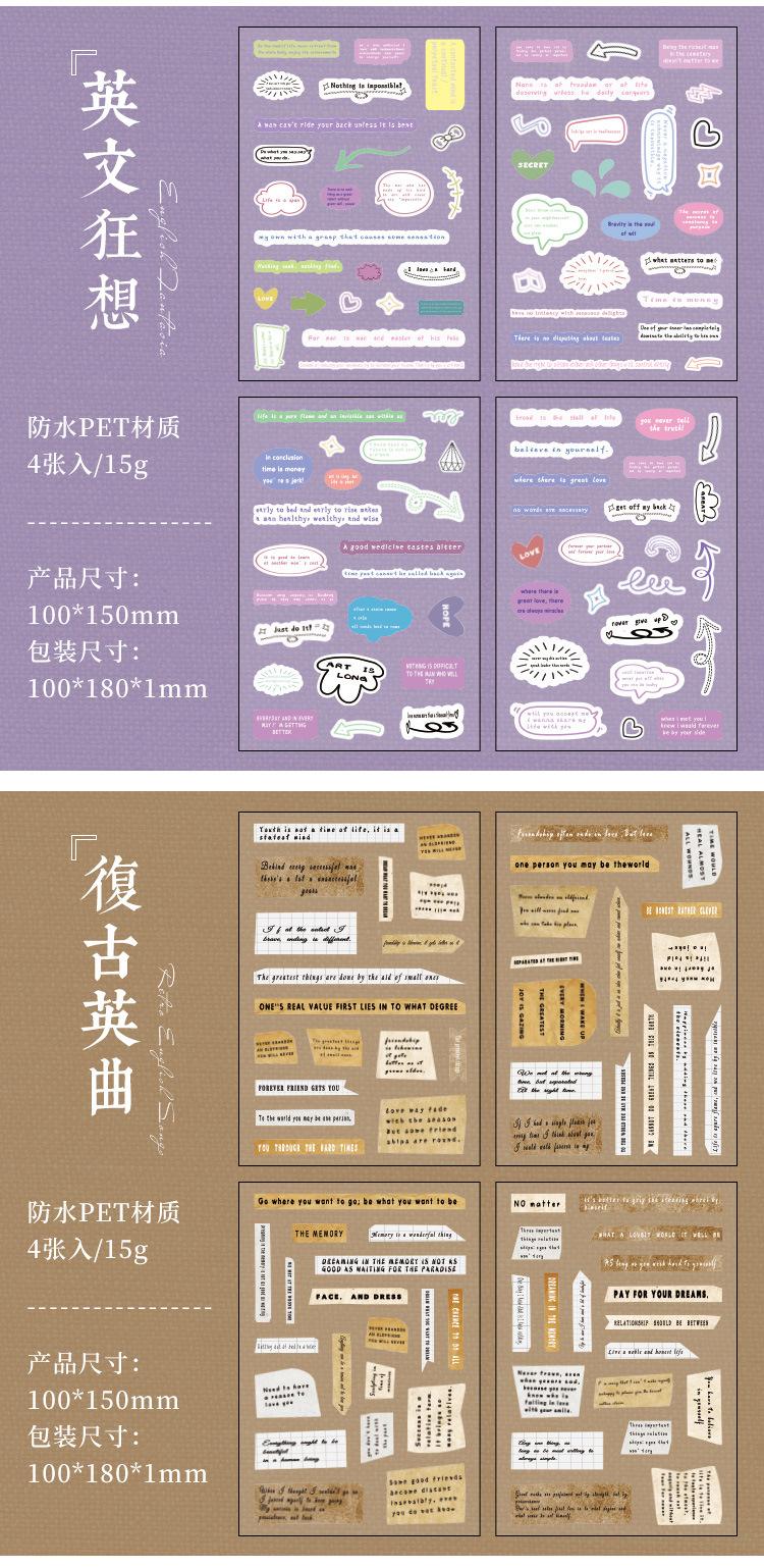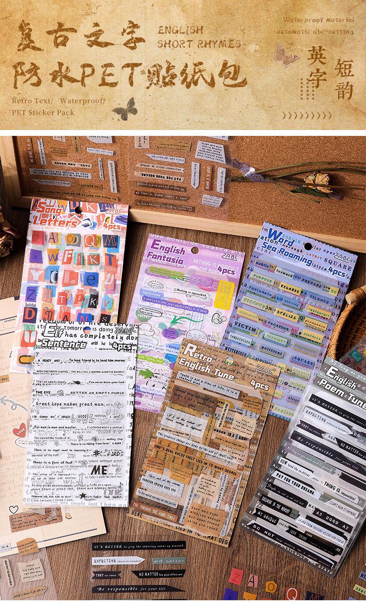 Bolsa de stickers ZABC transfronteriza serie de rimas cortas de palabras en inglés pegatina de material pet para cuenta de mano de película de corte retro 4 en 6