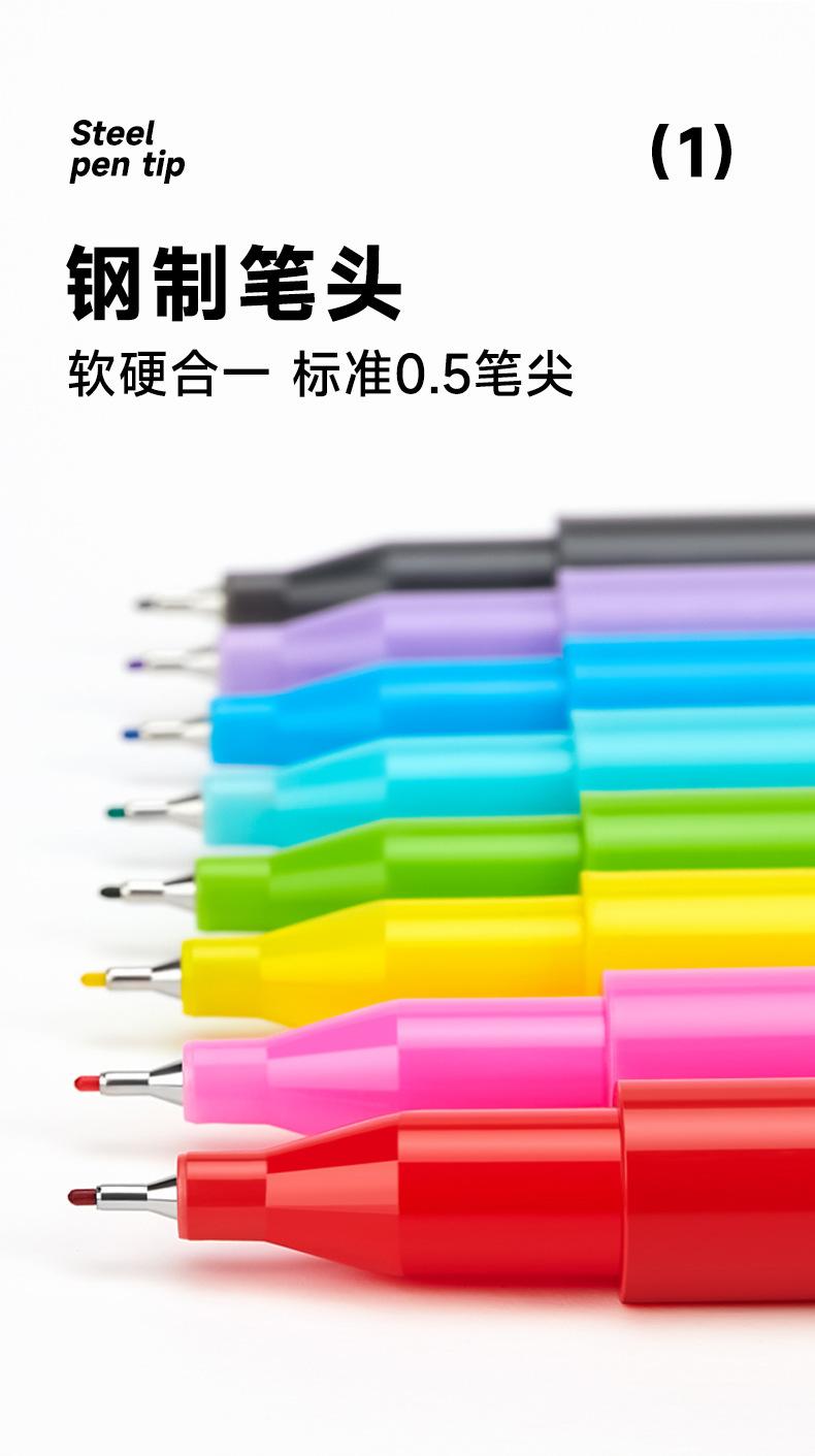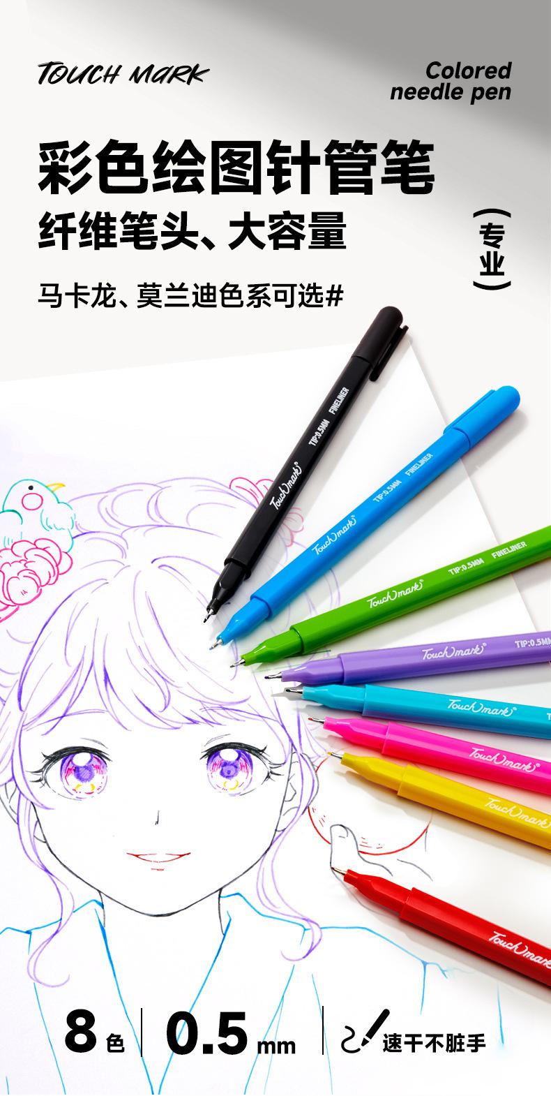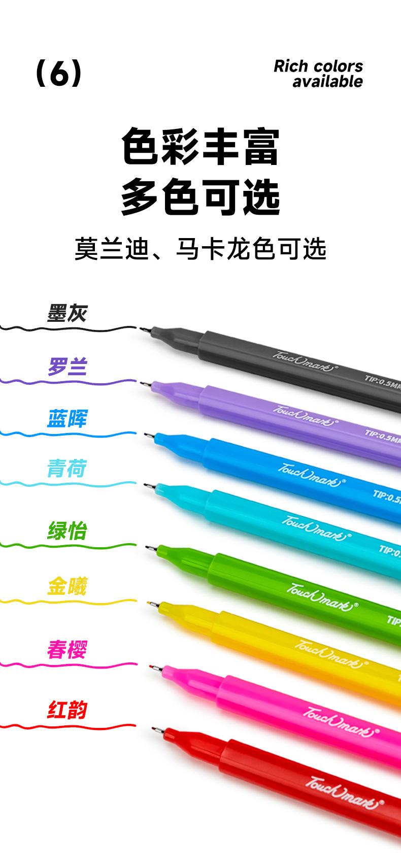 Pluma de aguja de color selección de un solo color 8 colores punta de 0.5 mm gran capacidad estudiante arte color a base de agua pluma Gouline