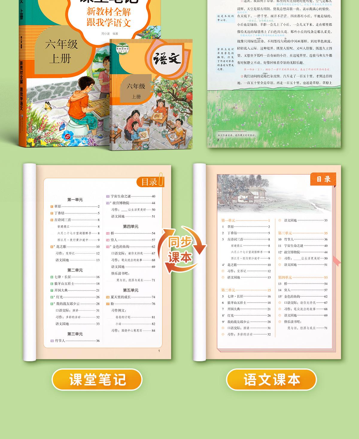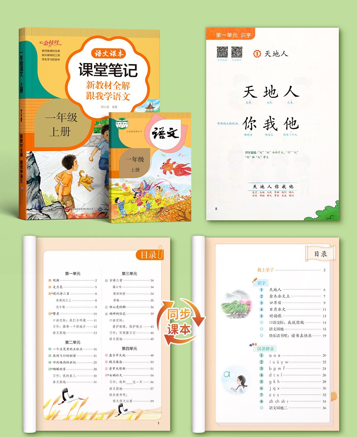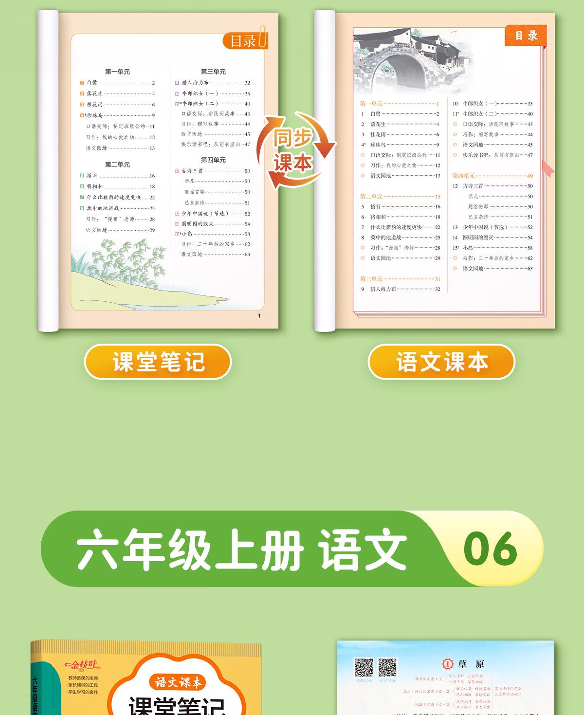 Apuntes de clase para los grados 1-6 Edición de educación popular Apuntes en clase para estudiantes de primaria Libros de texto de sincronización en chino Conjunto completo de libros de texto