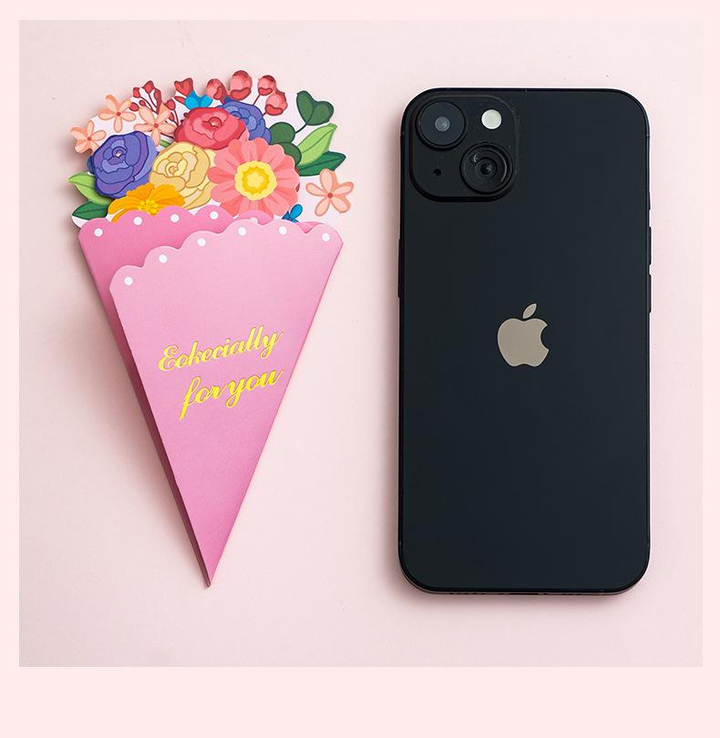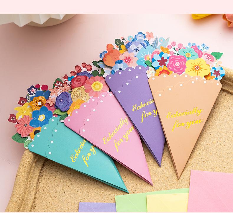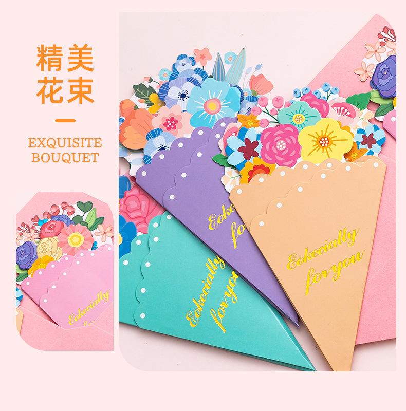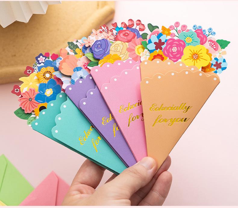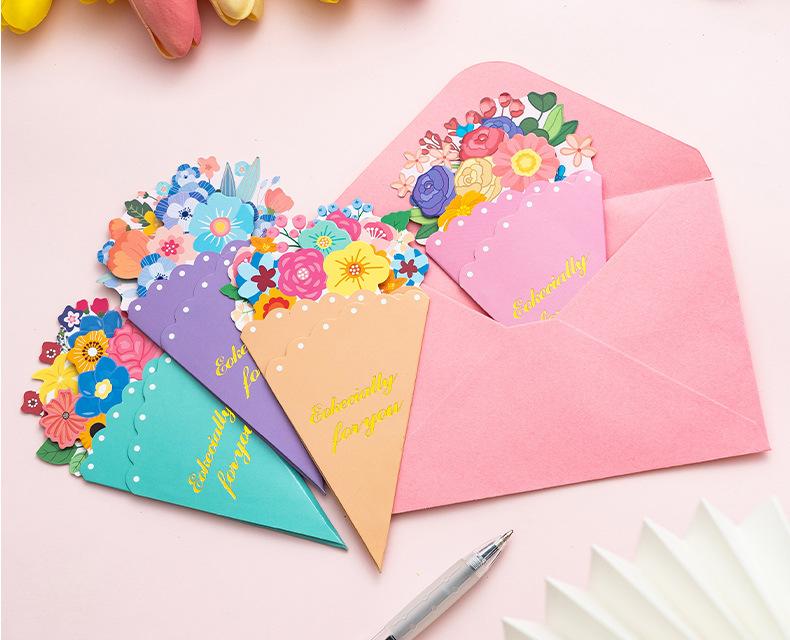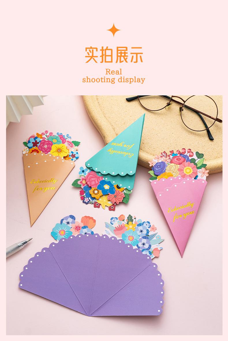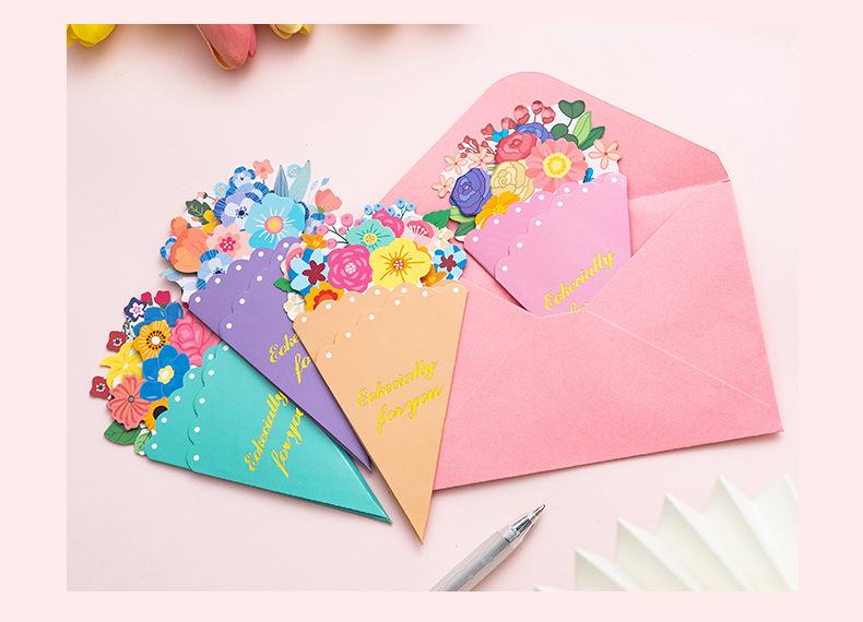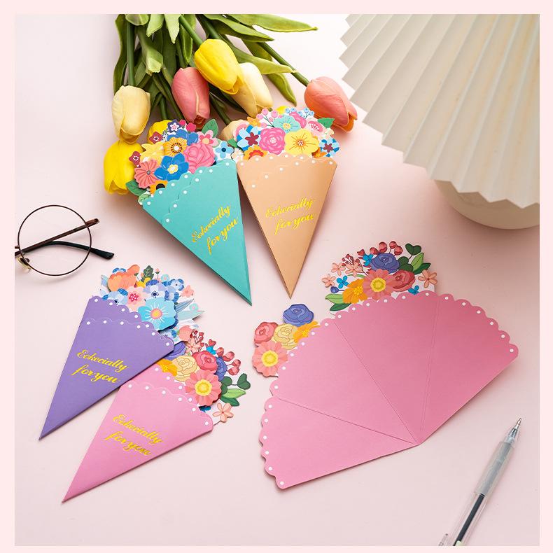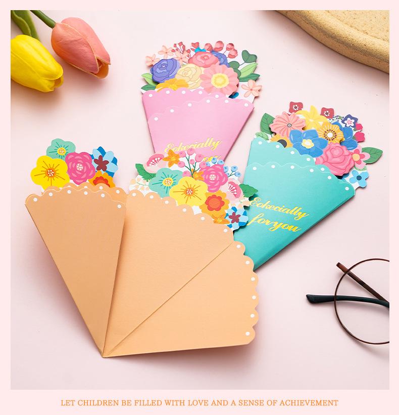 Tarjeta de Felicitación Ramo Estéreo Día de la Madre Bendición Creativa Boda Cumpleaños Tarjeta de Mensaje con Sobre Plegable Escrito a Mano Tarjeta Pequeña