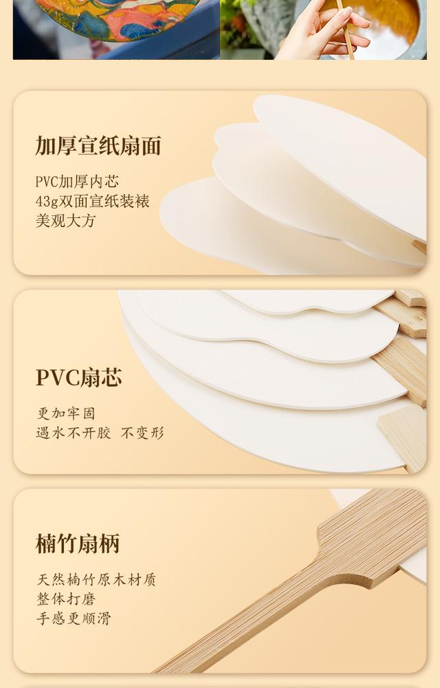 Abanico de Papel de Arroz Vintage en Blanco para Pintar, Abanico DIY Pintado a Mano de Estilo Tradicional, Abanico Hecho a Mano de Arte de Bambú