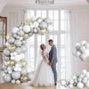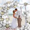 【Kit de arco de globos】El lujoso juego de decoración de guirnaldas de globos de 139 piezas incluye globos blancos, dorados y plateados, hojas y otros accesorios de guirnaldas de globos para satisfacer sus necesidades de decoración de fiesta y crear un ambiente de fiesta romántico y hermoso.