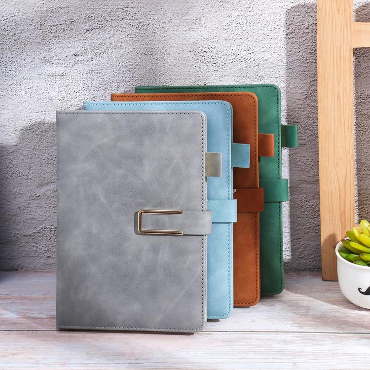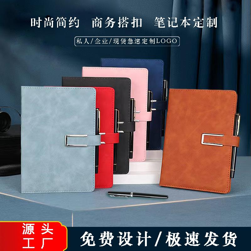 Cuaderno con hebilla A5, papelería gruesa, material de oficina, bloc de notas de cuero sintético, libro de mano con logotipo impreso