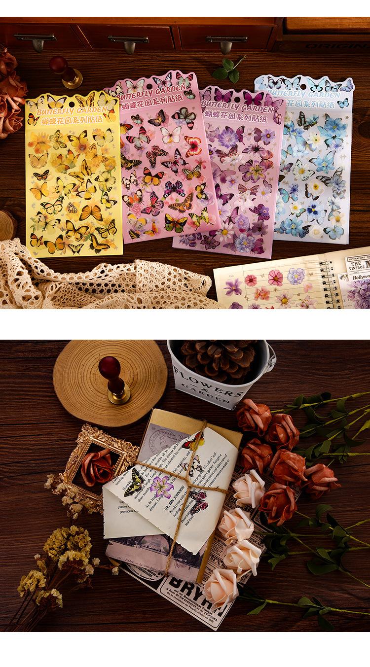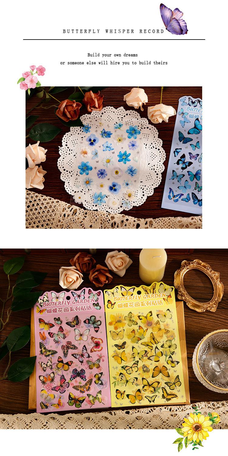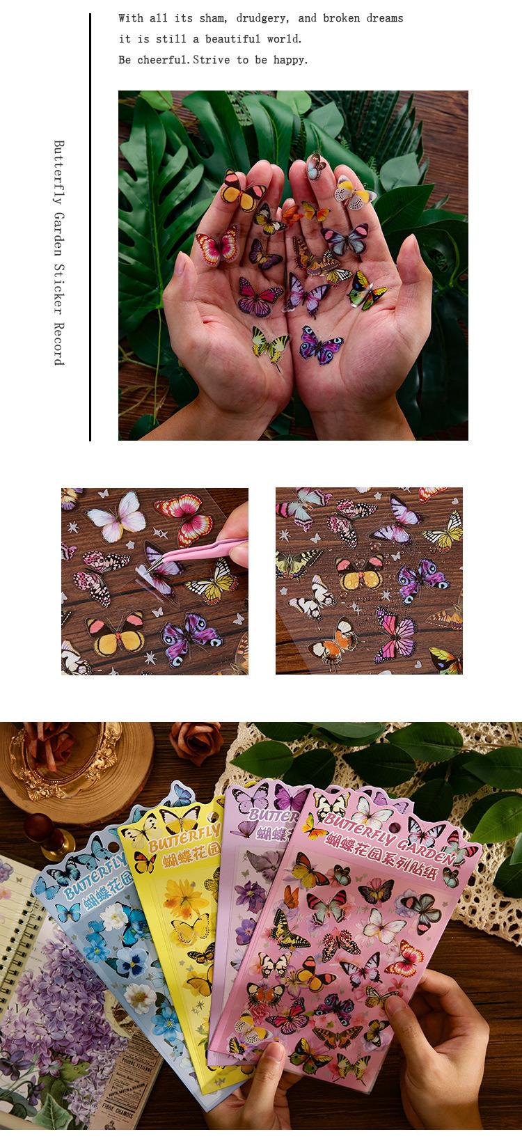 Bolsa de pegatinas de mariposas para niña estilo ins vintage pet impermeable material de decoración de taza para cuenta de mano patrón pequeño pegatina diy