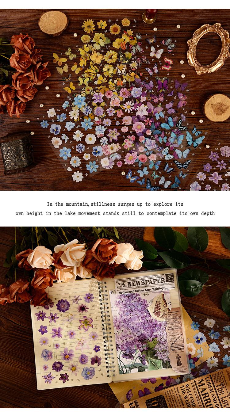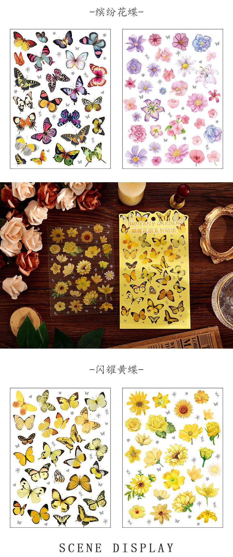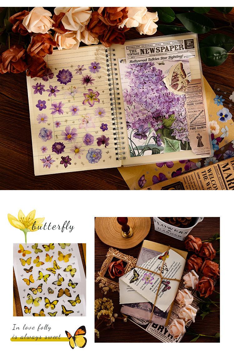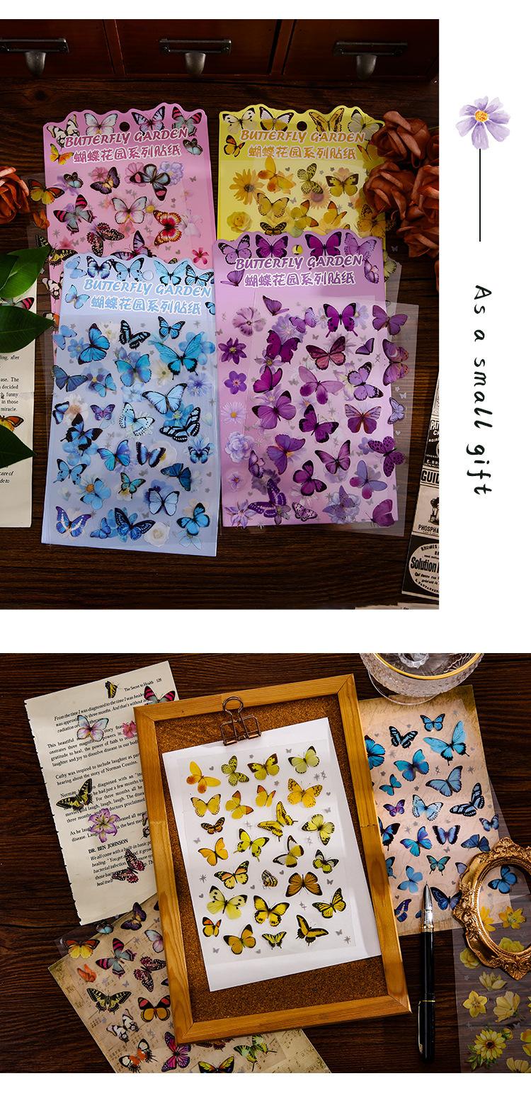 Bolsa de pegatinas de mariposas para niña estilo ins vintage pet impermeable material de decoración de taza para cuenta de mano patrón pequeño pegatina diy