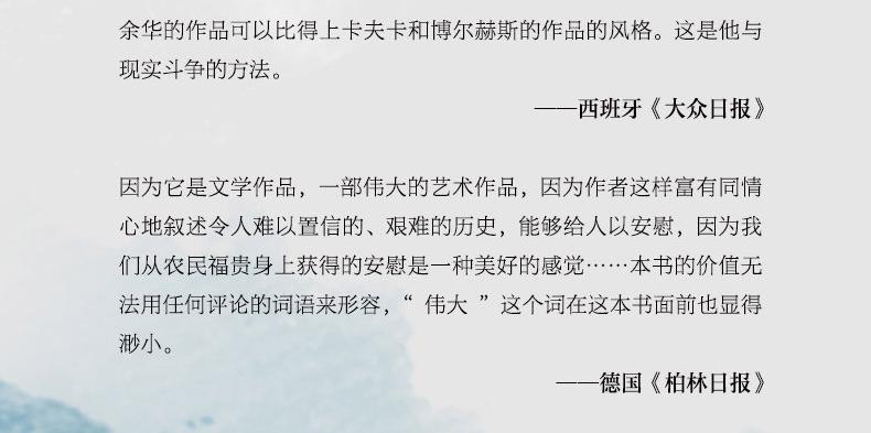 Todos los desastres ocurridos en China en los últimos sesenta años han afectado a Fugui y su familia. Los golpes que se han sucedido uno tras otro pueden hacer que los lectores no sientan compasión, pero la sincera escritura de Yu Hua ha convertido a Fugui en un héroe de la existencia. Al final de esta conmovedora novela, las ganas de vivir son algo inamovible para Fugui. - Revista Time