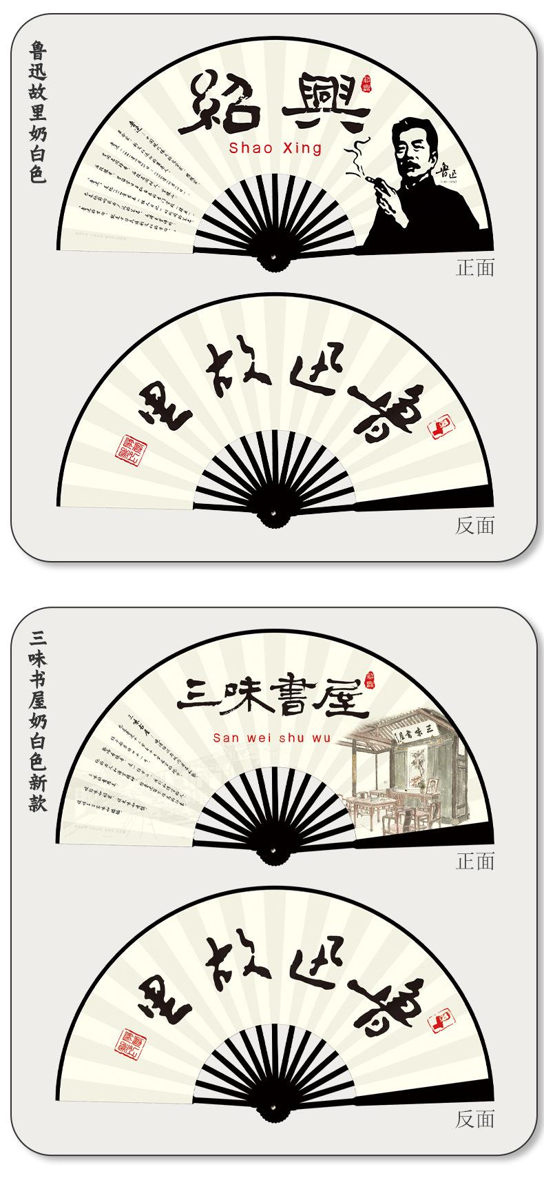 Type a 10-inch folding fan lu xun hometown milky white, Type b 10-inch folding fan baicaoyuan milky white, Typ...