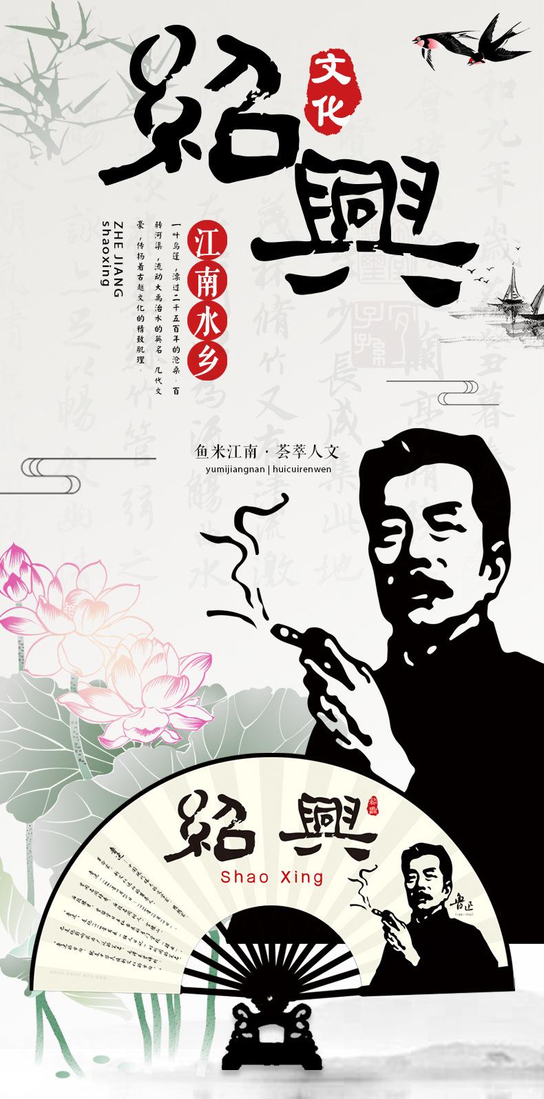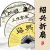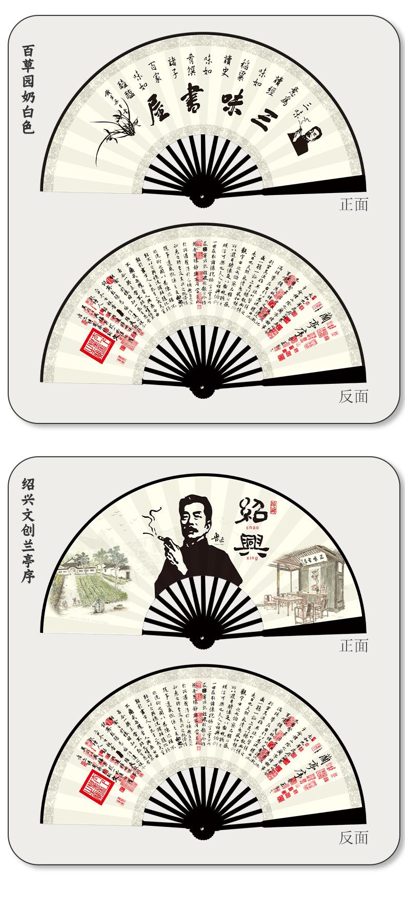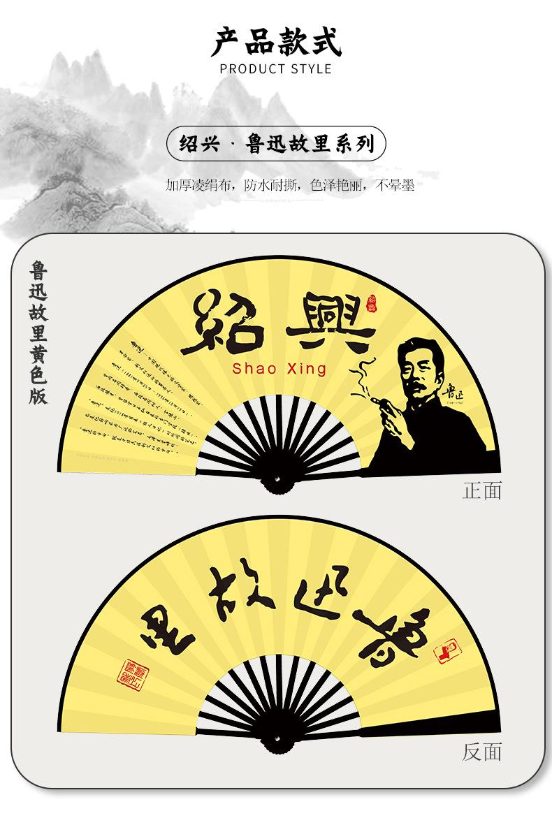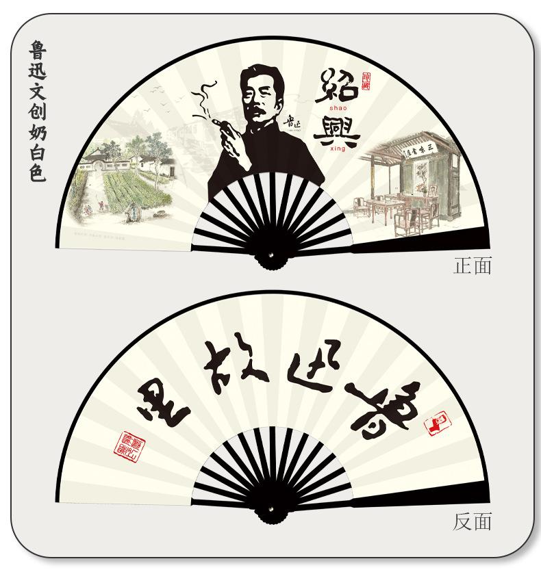 Abanico plegable de tela de seda de 10 pulgadas con patrón personalizado para hombres, de la ciudad natal de Lu Xun, de Shaoxing, con diseño personalizado, de bambú, artesanal, hecho a medida