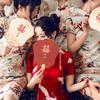 Venta al por mayor de fábrica boda novia dama de honor grupo abanico abanico de bienvenida grupo boda boda china accesorios para fotos rojo de doble cara