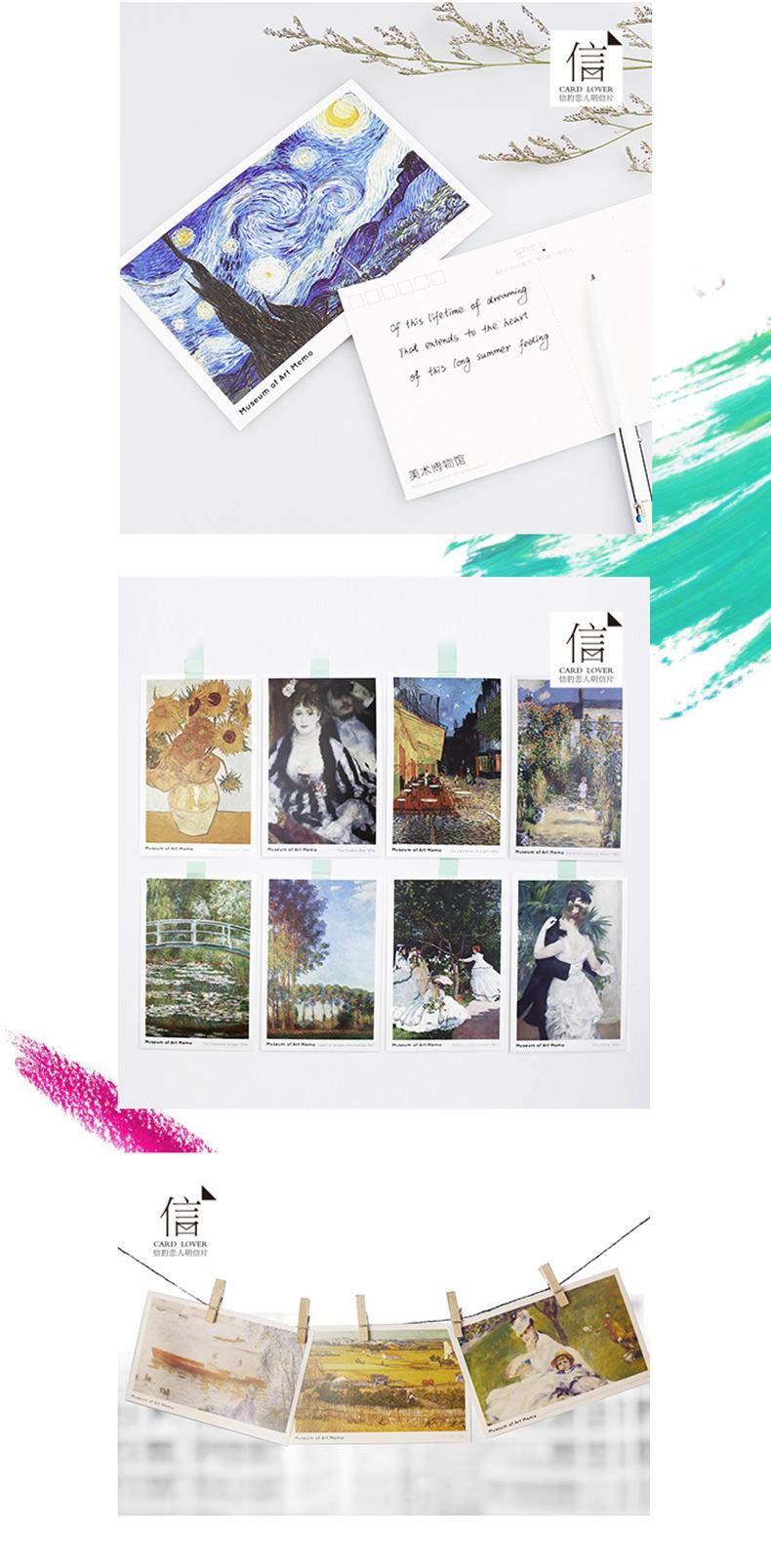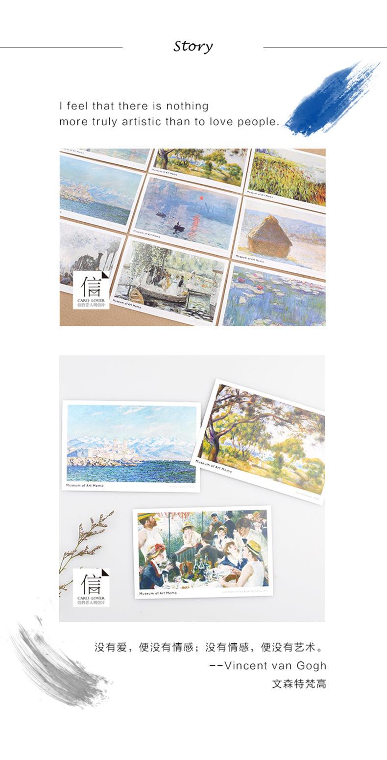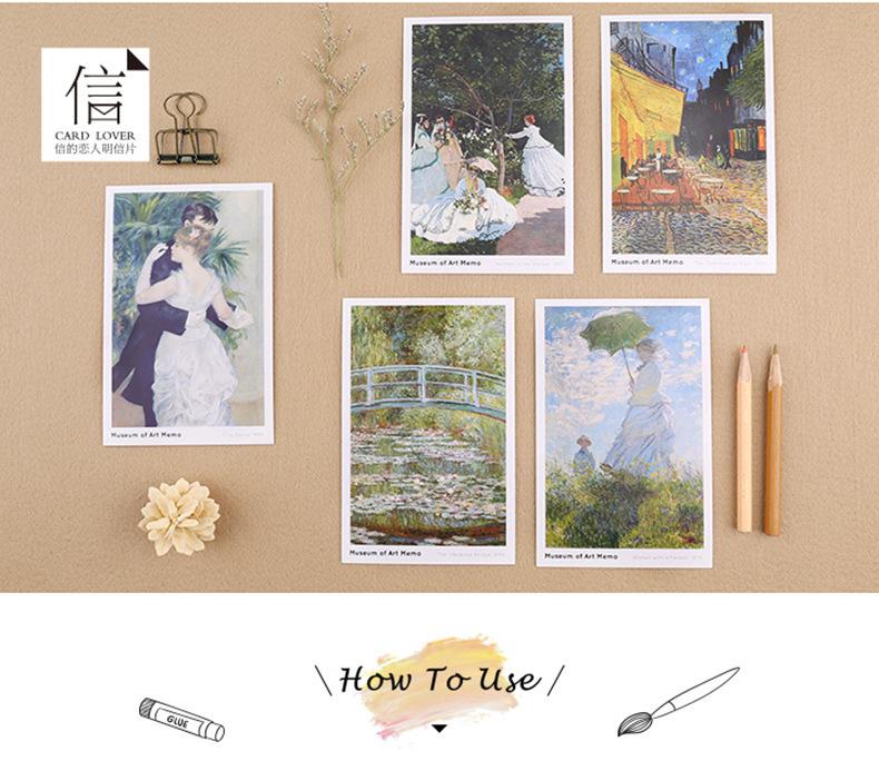 Postal de Pintura al Óleo Clásica Europea de Estilo Retro "Museo de Arte" Obras de Pintura Impresionista de Van Gogh Monet