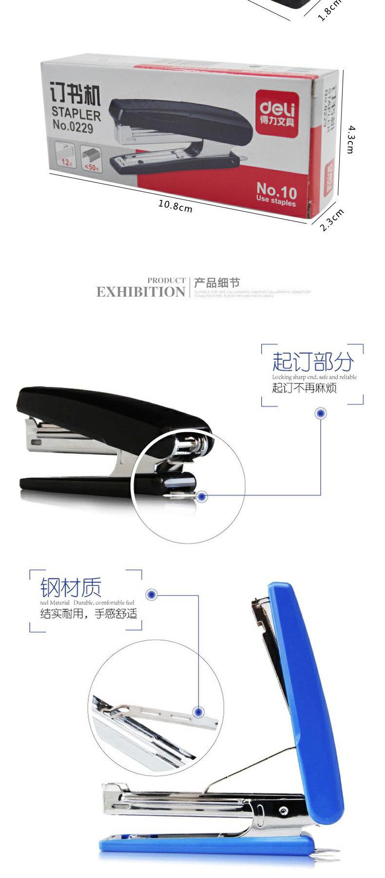 Grapadora Deli 0229 10 pequeña y mediana portátil con libro grueso de brazo largo para libros Mini grapadora grande de ahorro de esfuerzo