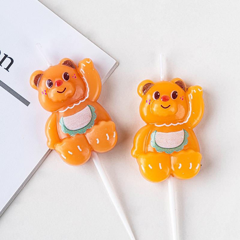 Candle bib yellow brown bear single boxed, Bear candles single box of 10 pieces, 10 bear candles in bag, 3 pin...