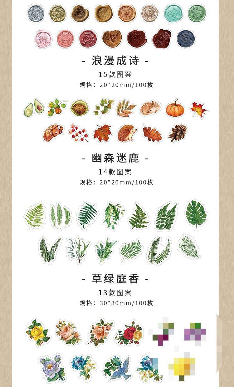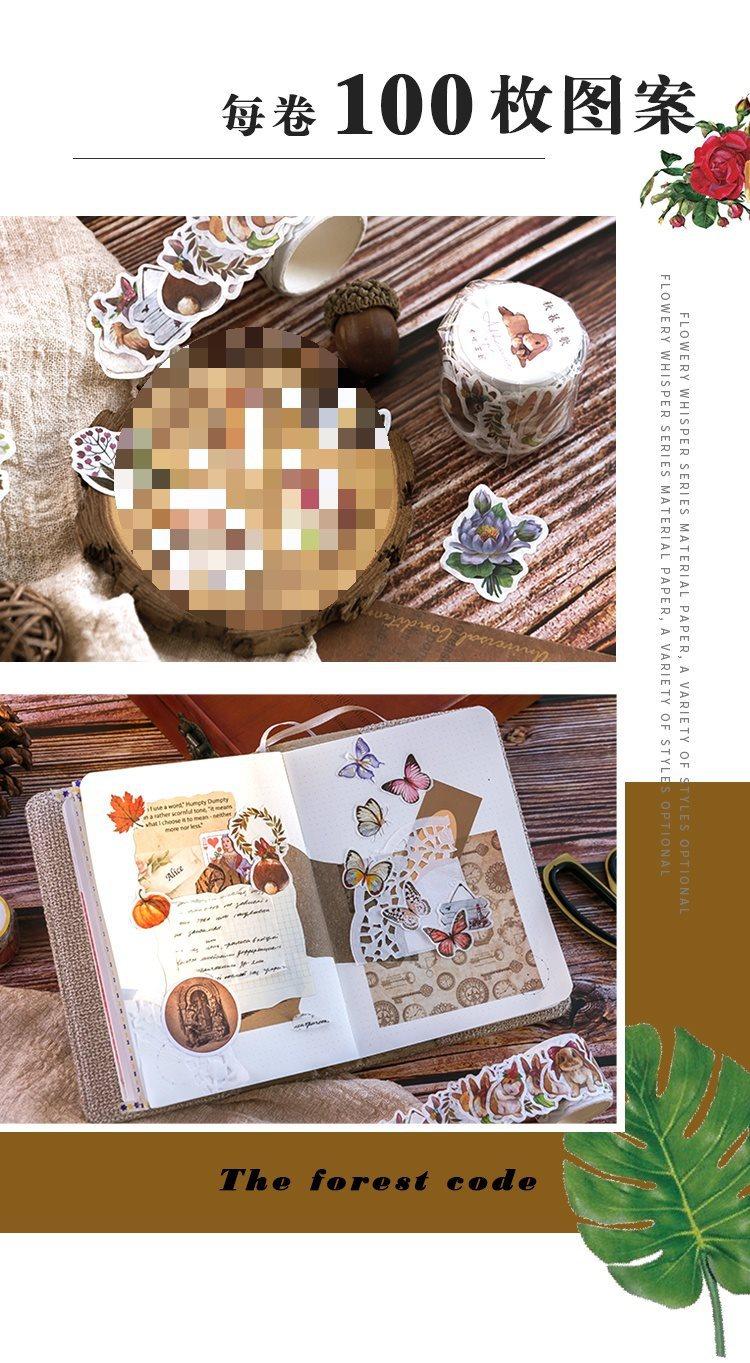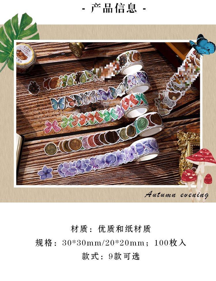 Literario Retro Otoño Crepúsculo Cantante Corte Película Collage Cinta Washi 100 Mariposas Flores y Animales Manual Materiales diy