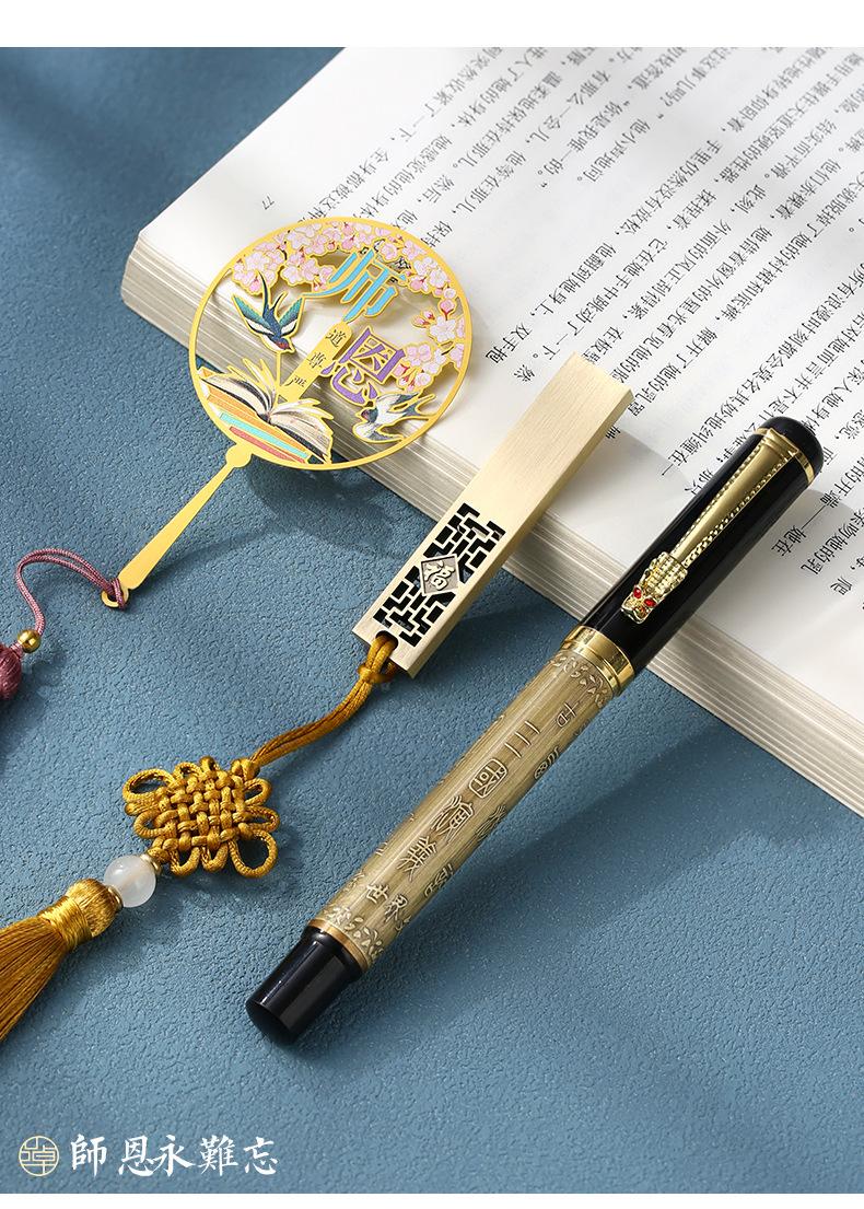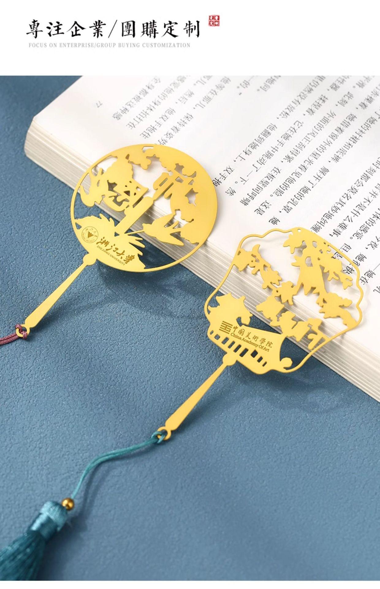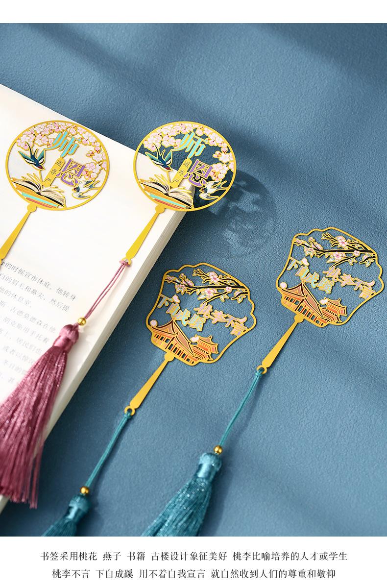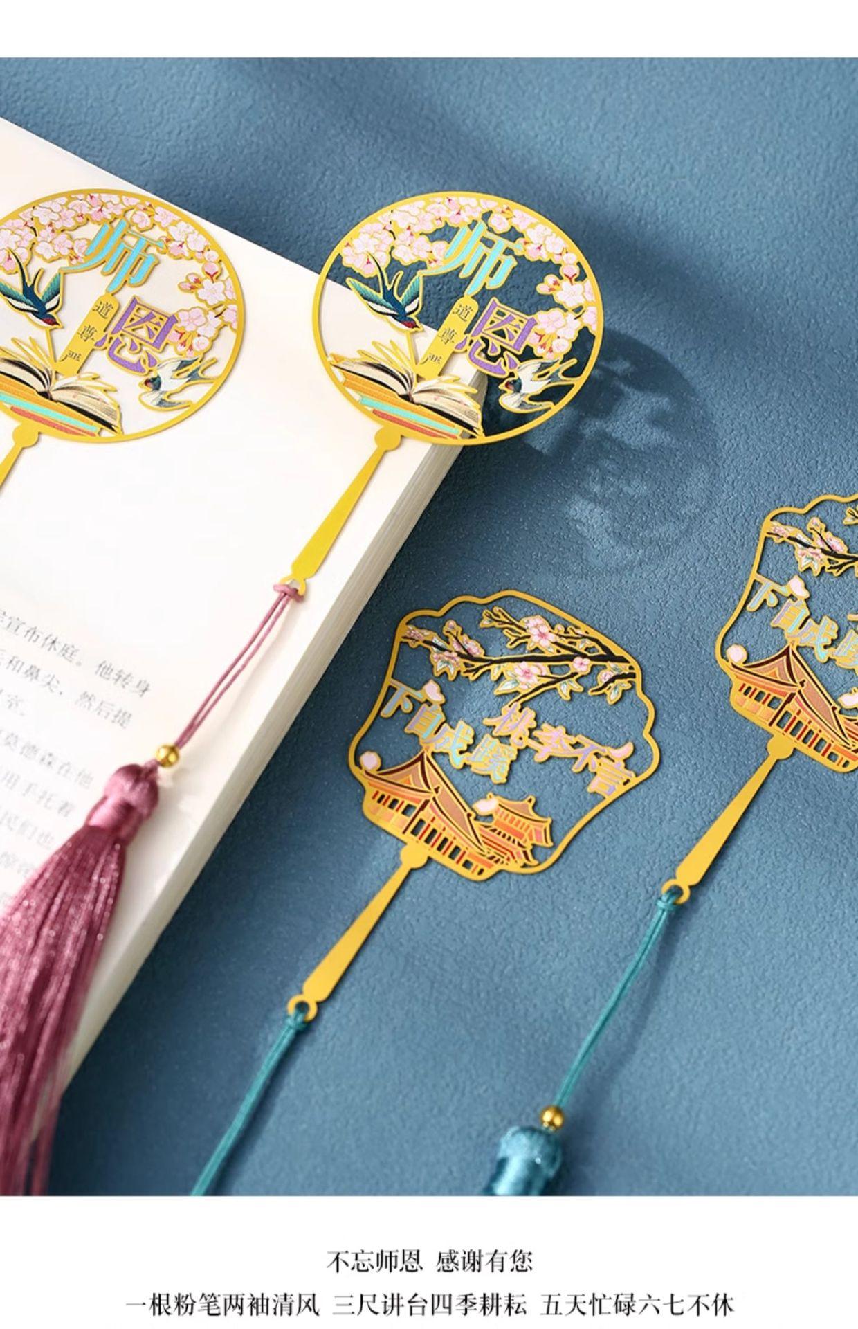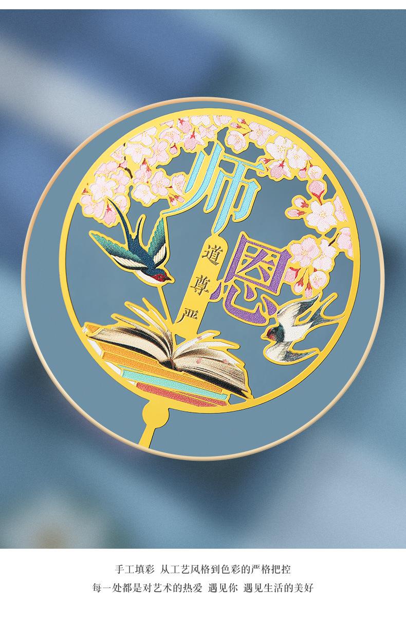 Marcapáginas de metal hueco redondo para el Día del Maestro, caja de regalo con logotipo personalizado, letras, exquisito disco U de acero de estilo chino clásico