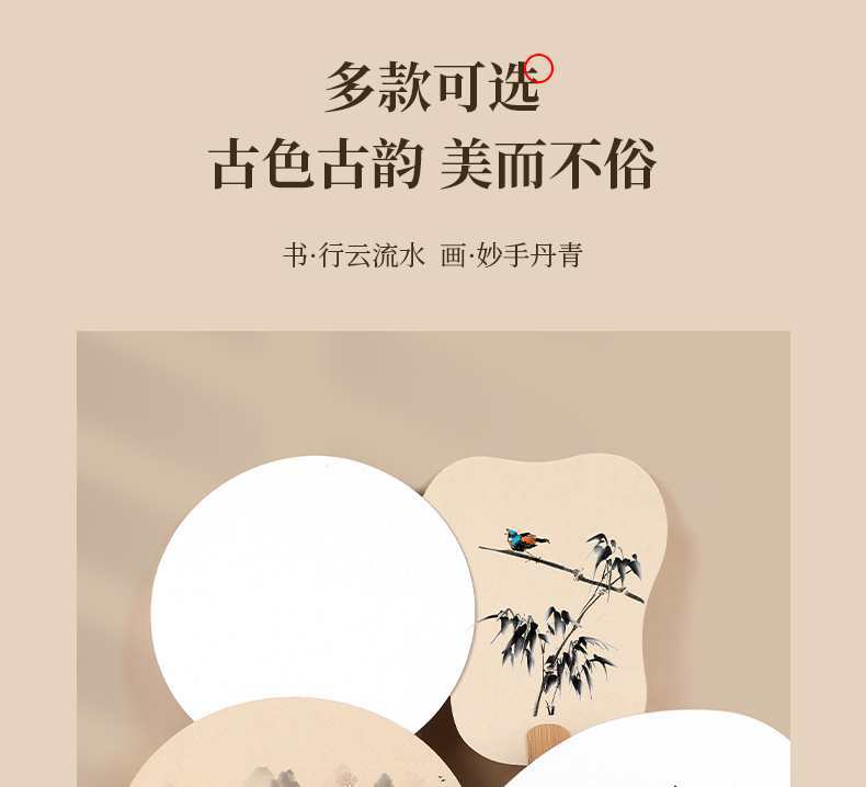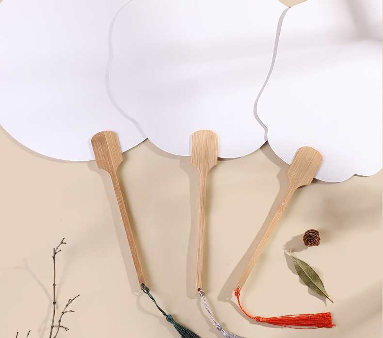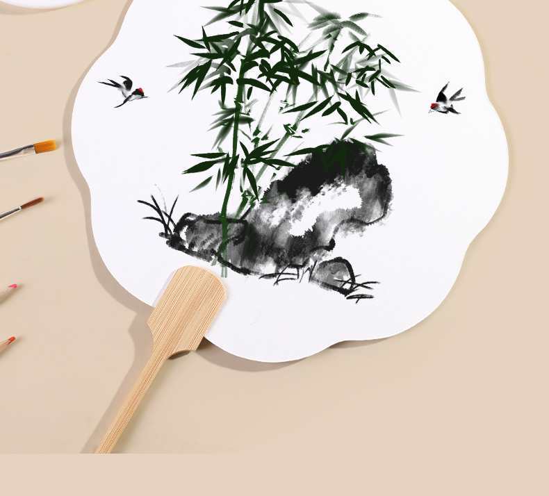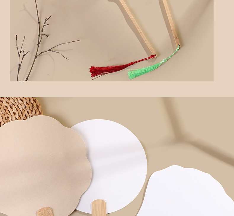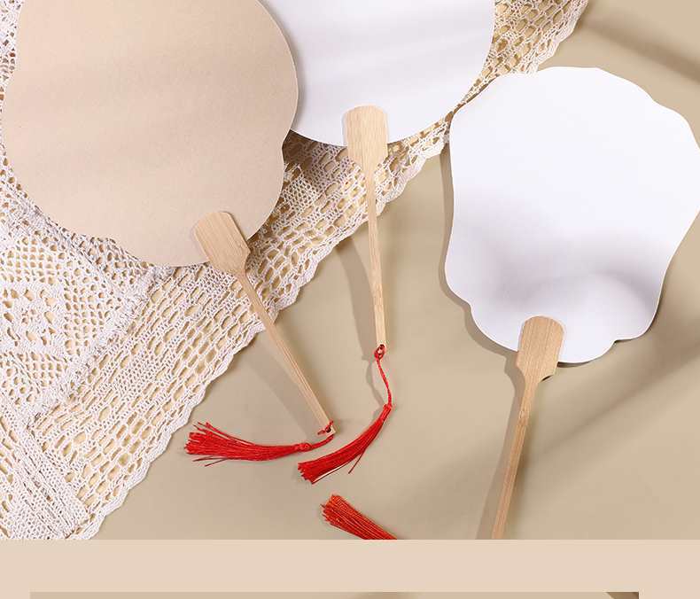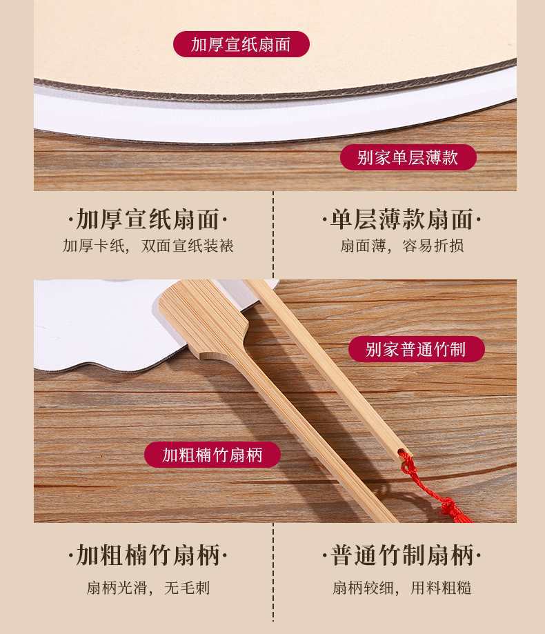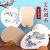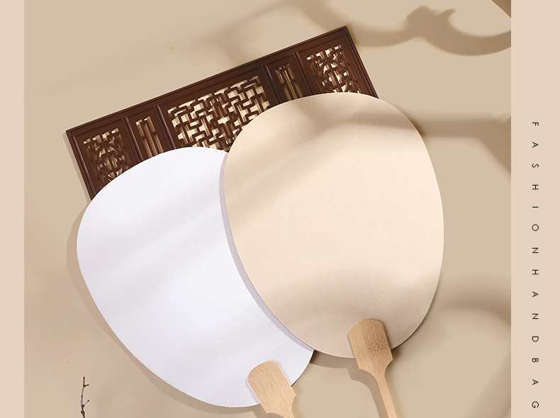 Abanico redondo de papel en blanco de cartón grueso hecho a mano al por mayor, abanico de palacio de viento, abanico pintado a mano, abanico de papel de arroz retro redondo