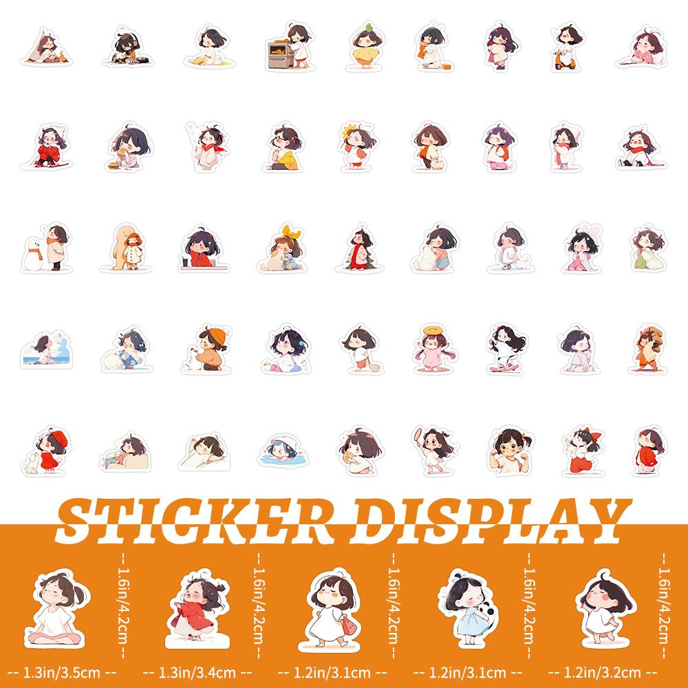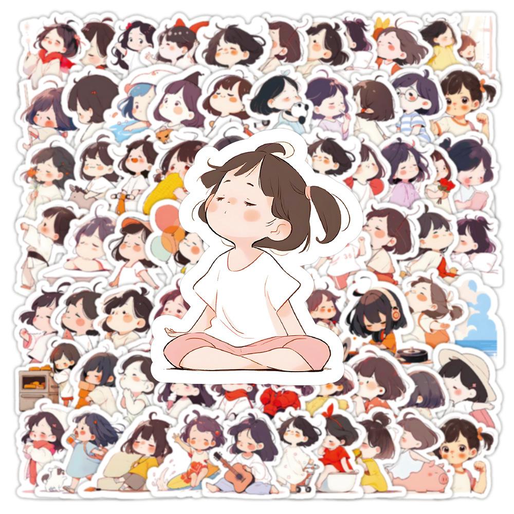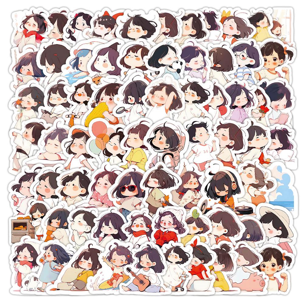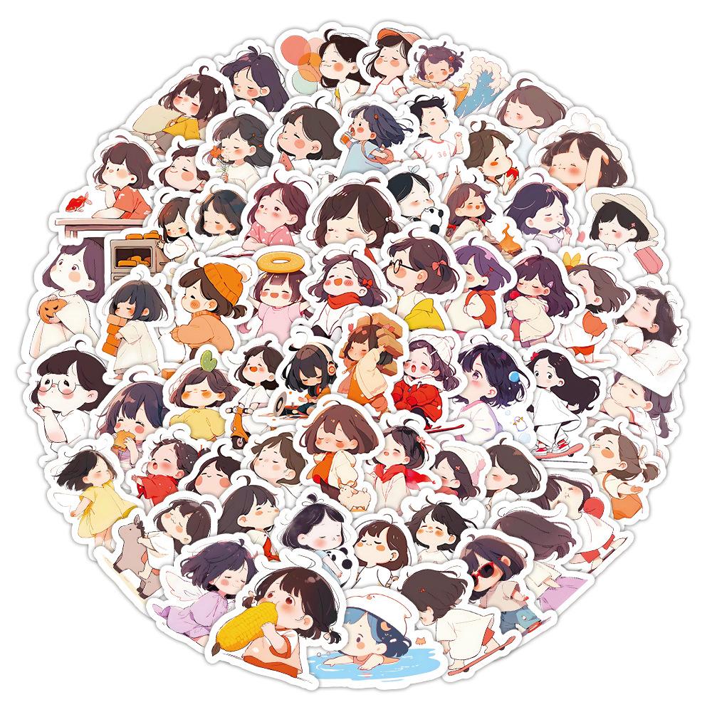 100 pegatinas de dibujos animados de chicas transfronterizas bidimensionales para chicas perezosas, pegatinas decorativas impermeables para teléfono móvil.