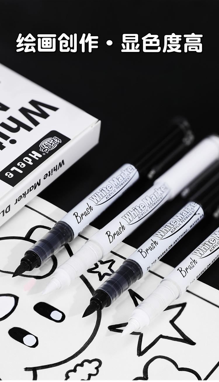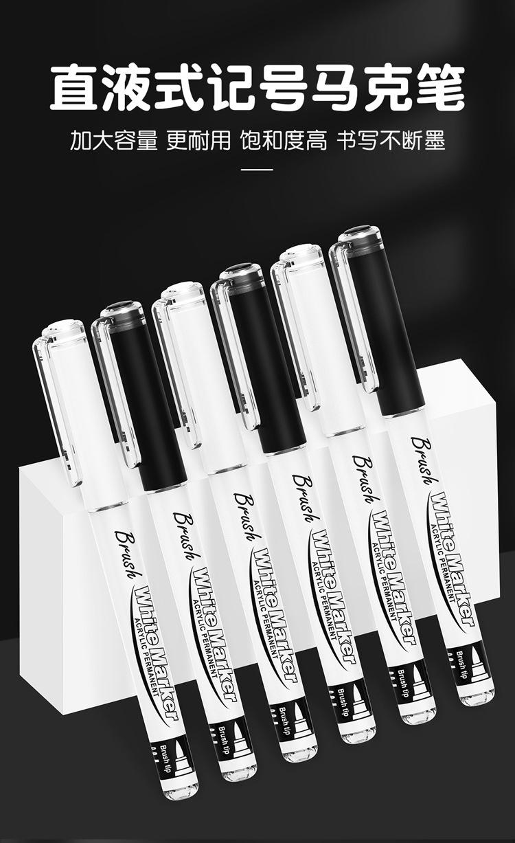 Marcador líquido directo de punta suave, acrílico blanco y negro, resistente al agua, ideal para resaltar obras de arte, cartón negro, grafiti y pintura.