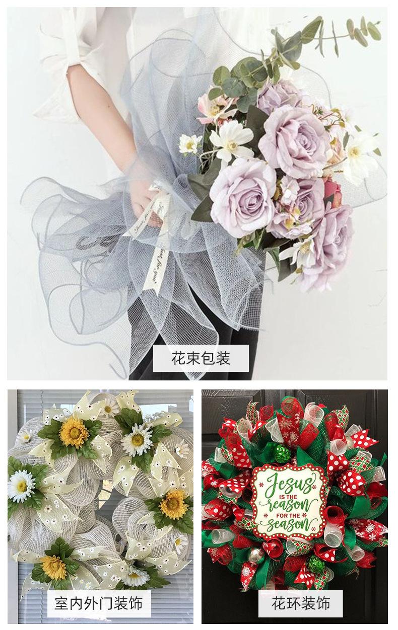 Rollo de tela de gasa para embalaje de flores, decoración navideña, malla festiva, diseño de sitio, malla de PP, malla de plástico, fábrica mayorista