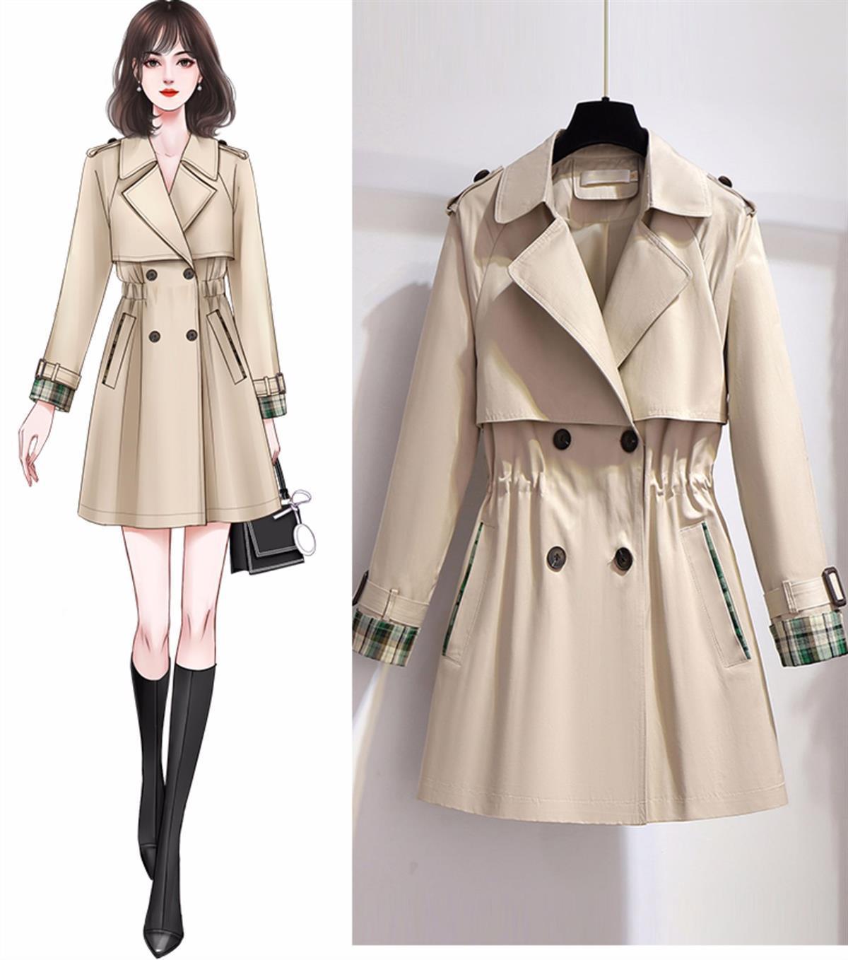 Gabardina de longitud media para mujer, primavera y otoño 2021, nueva versión coreana, abrigo popular de estilo británico por encima de la rodilla, chaqueta de primavera y otoño