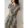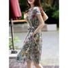 Vestido elegante de gasa floral ajustado, verano 2024, nueva moda, falda larga con vientre.