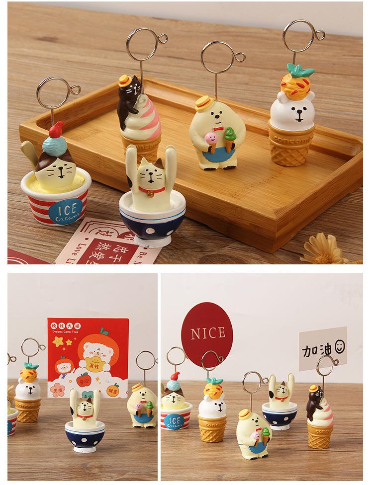 Porta notas con mensaje de gato y oso de dibujos animados japoneses, bonito portafotos de resina para tarjetas, decoración de escritorio, regalo