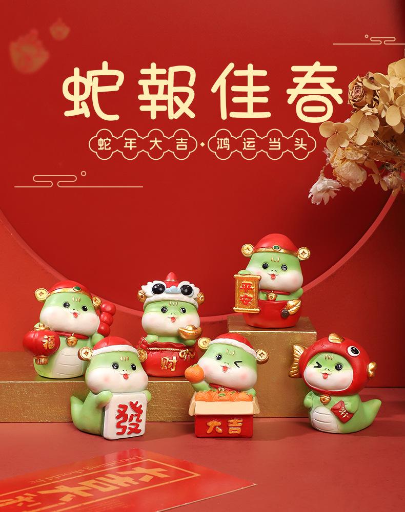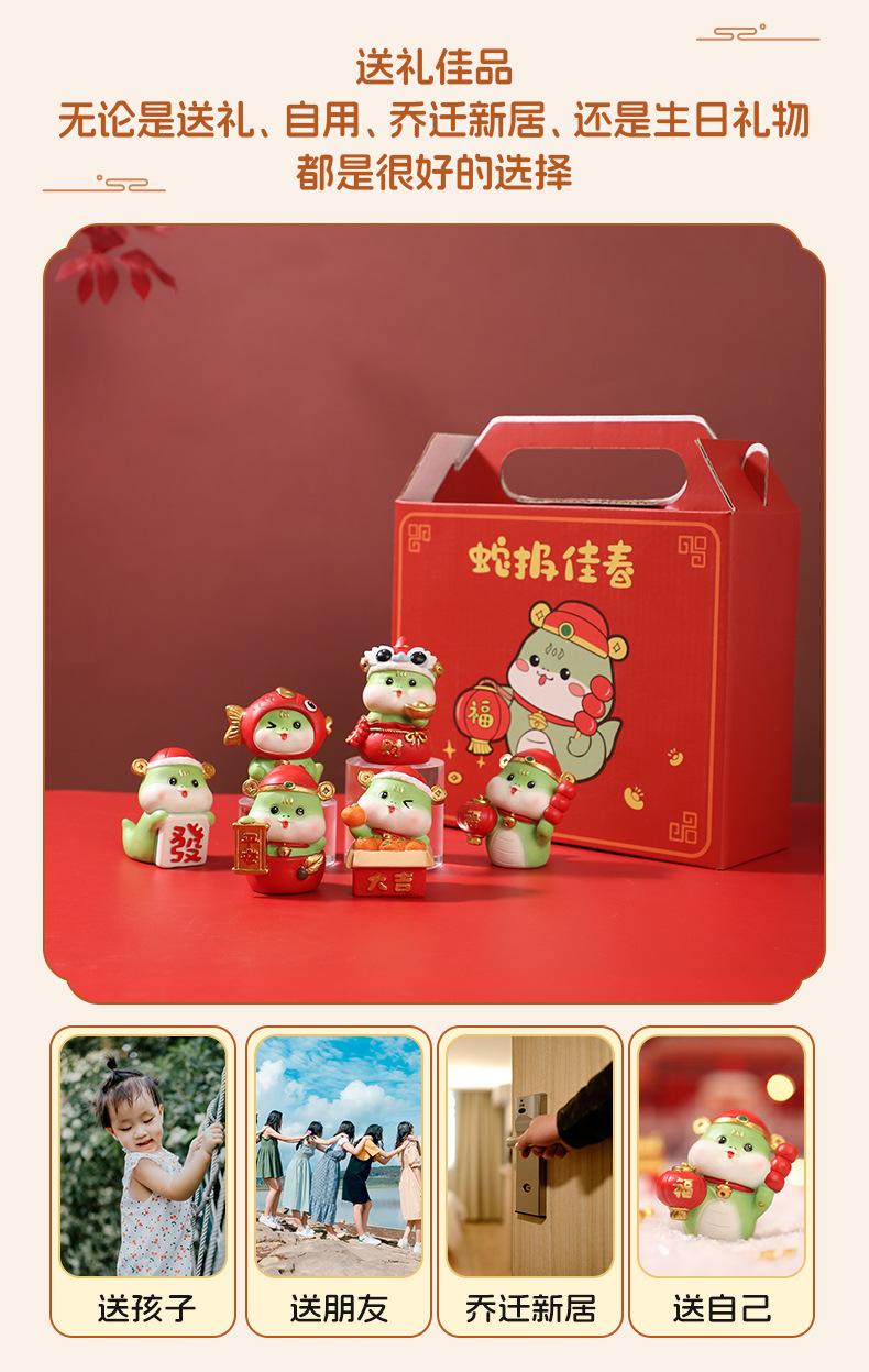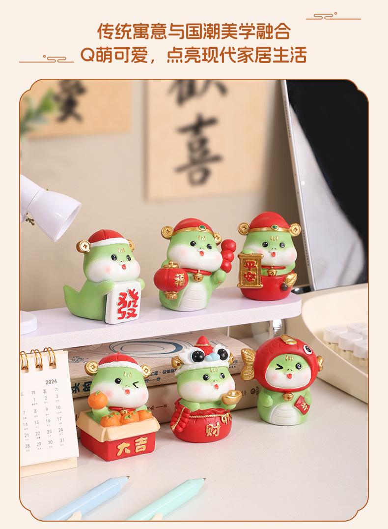 Muñeca de serpiente del zodiaco de las mareas nacionales, regalo festivo creativo de cumpleaños, regalo de juego de mareas, bendición de resina, adornos pequeños de Año Nuevo, caja de regalo