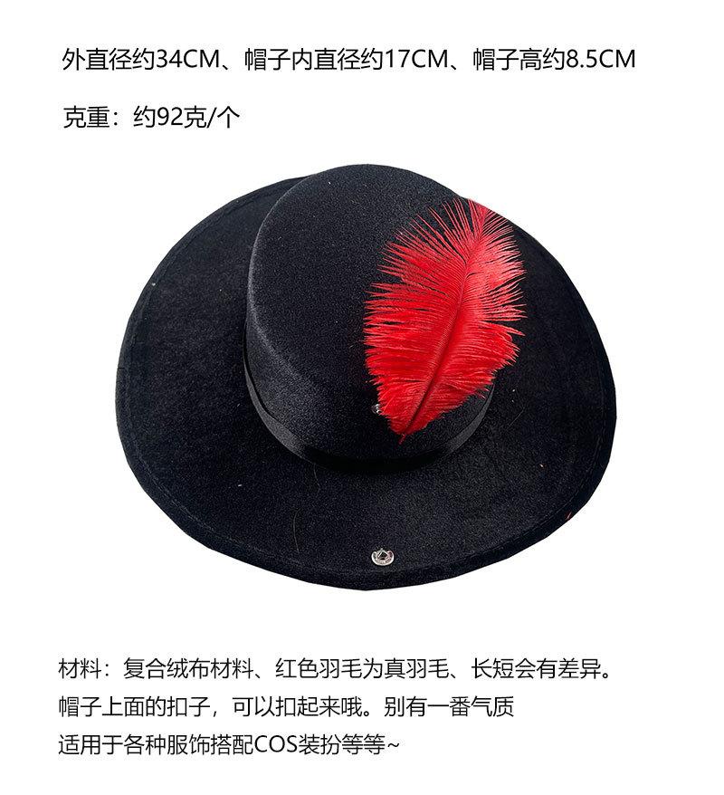 Sombrero de fiesta para baile, tocado de plumas de avestruz, sombrero de Zorro, sombrero de plumas de pirata, tocado de rol
