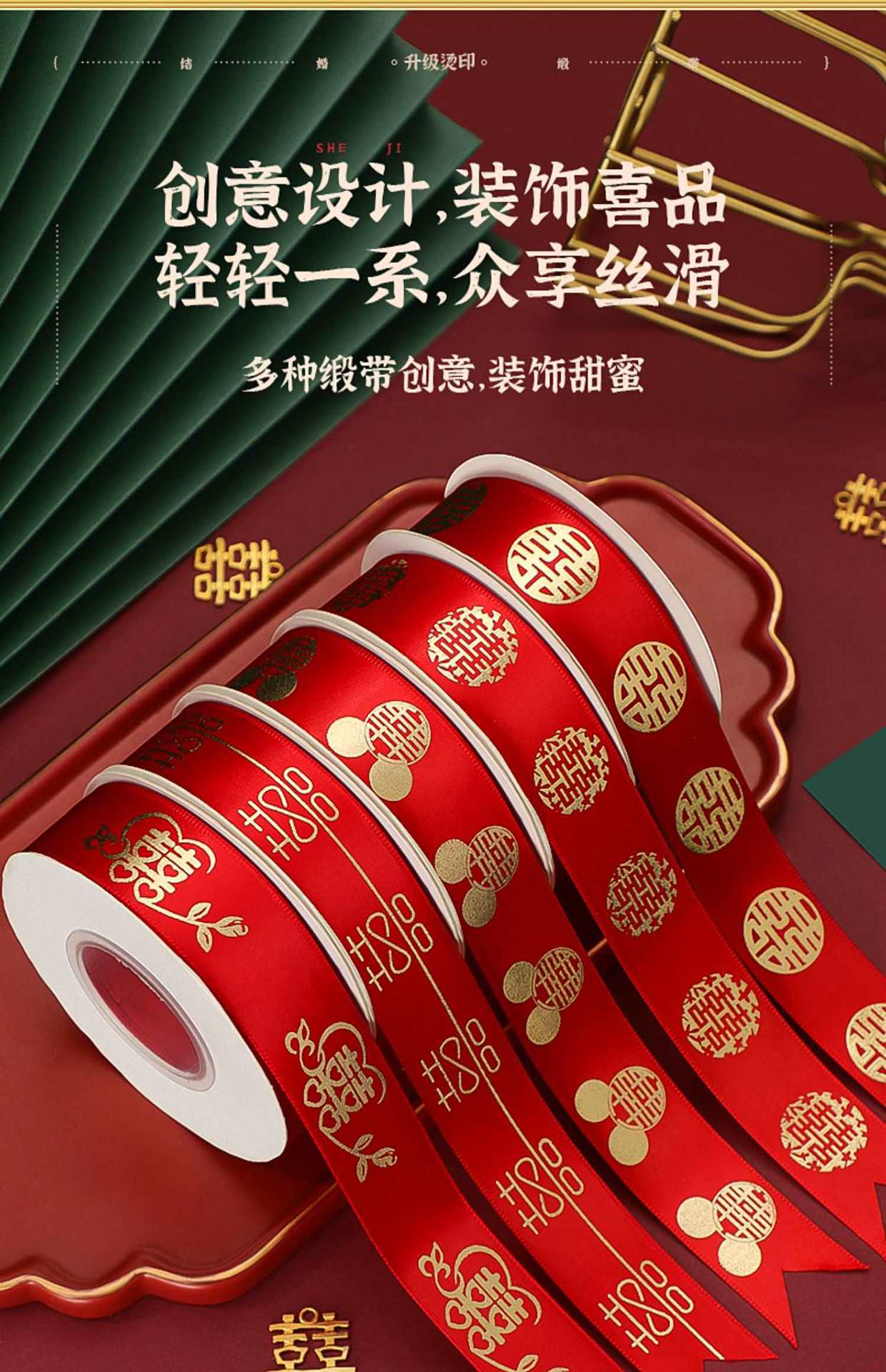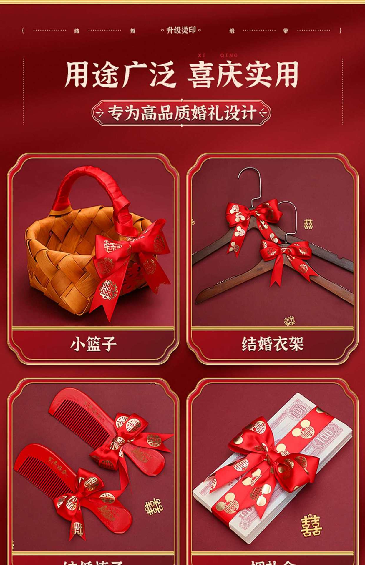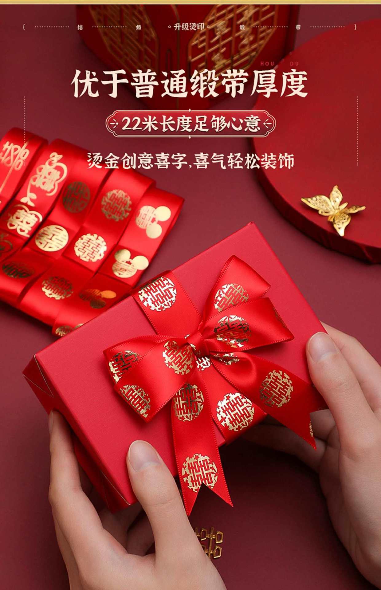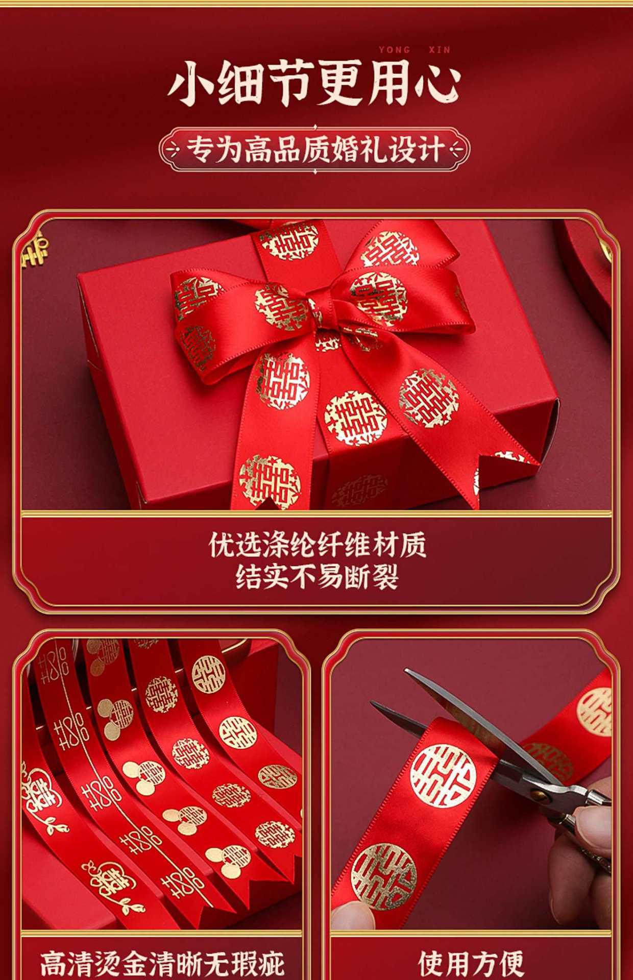 Colección de suministros para bodas al por mayor, banda Xi de satén rojo para boda, caja de dulces para dote de novia, paquete de cuerda de regalo