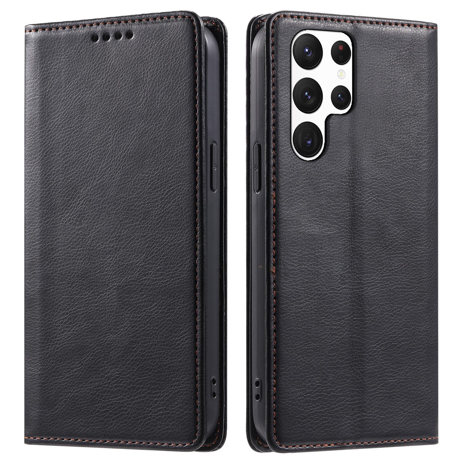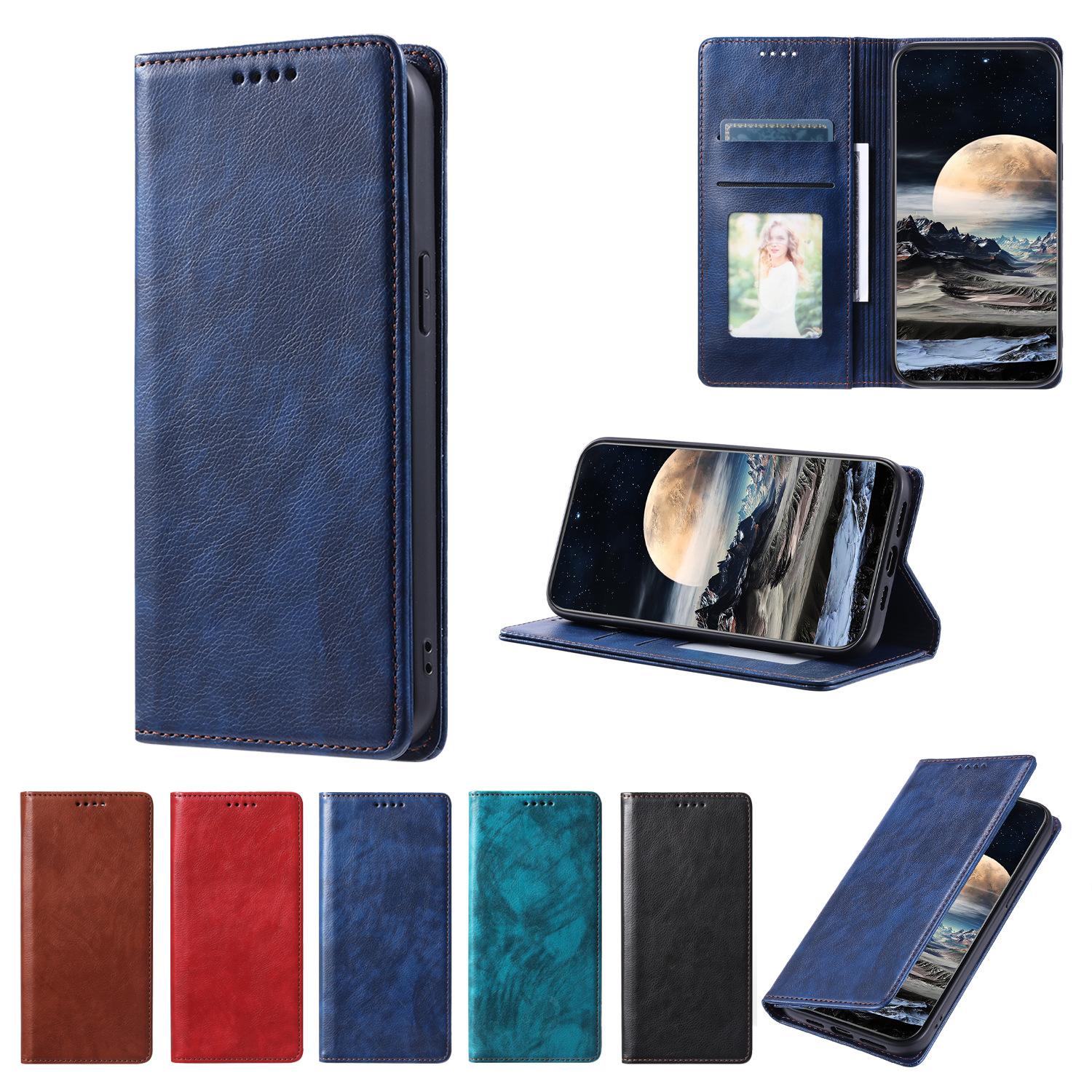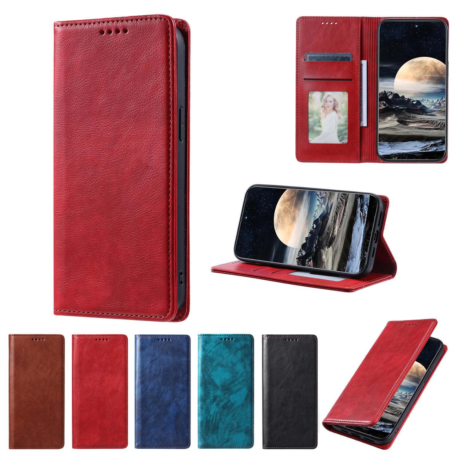 Nueva funda de cuero con patrón de lichi para teléfono móvil Samsung A25 5G con ventosa y tapa tipo tarjeta S23 FE