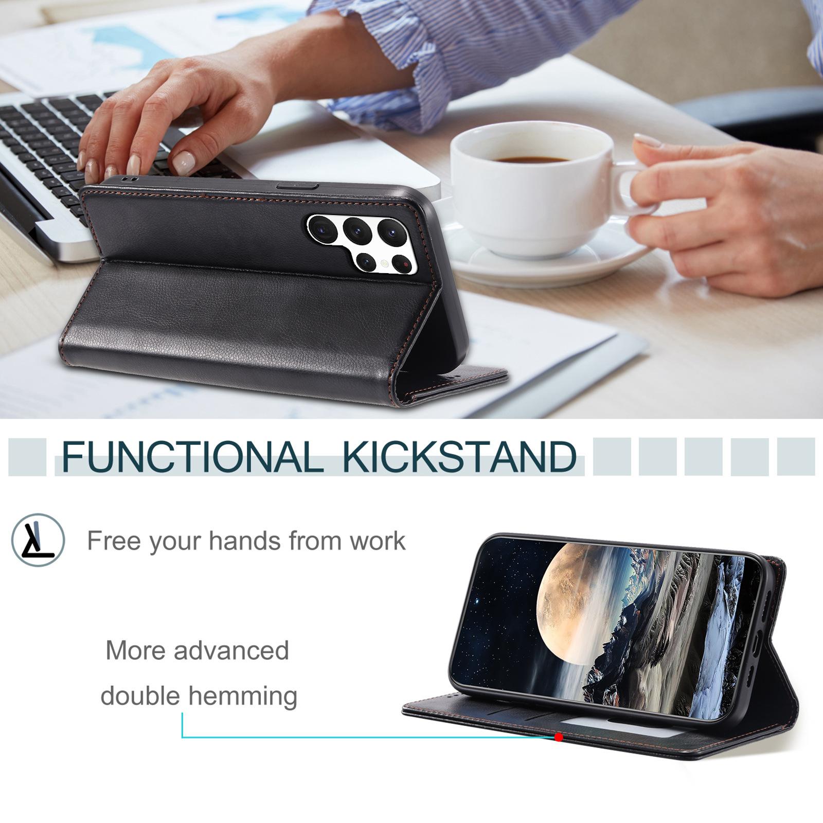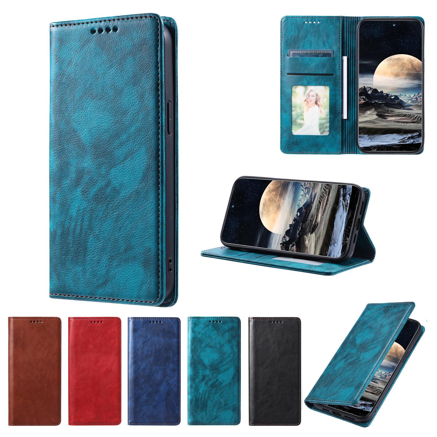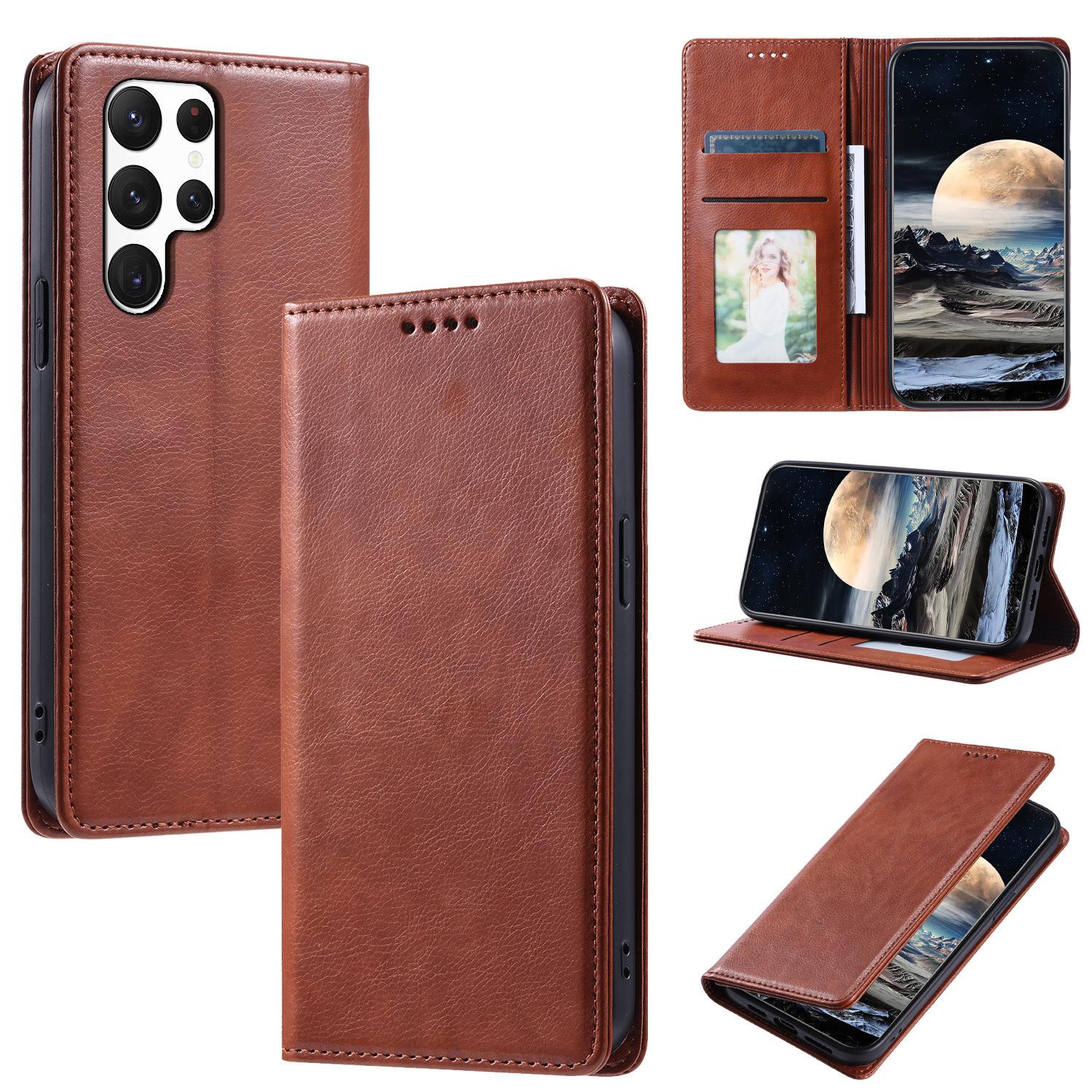 Nueva funda de cuero con patrón de lichi para teléfono móvil Samsung A25 5G con ventosa y tapa tipo tarjeta S23 FE