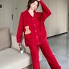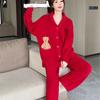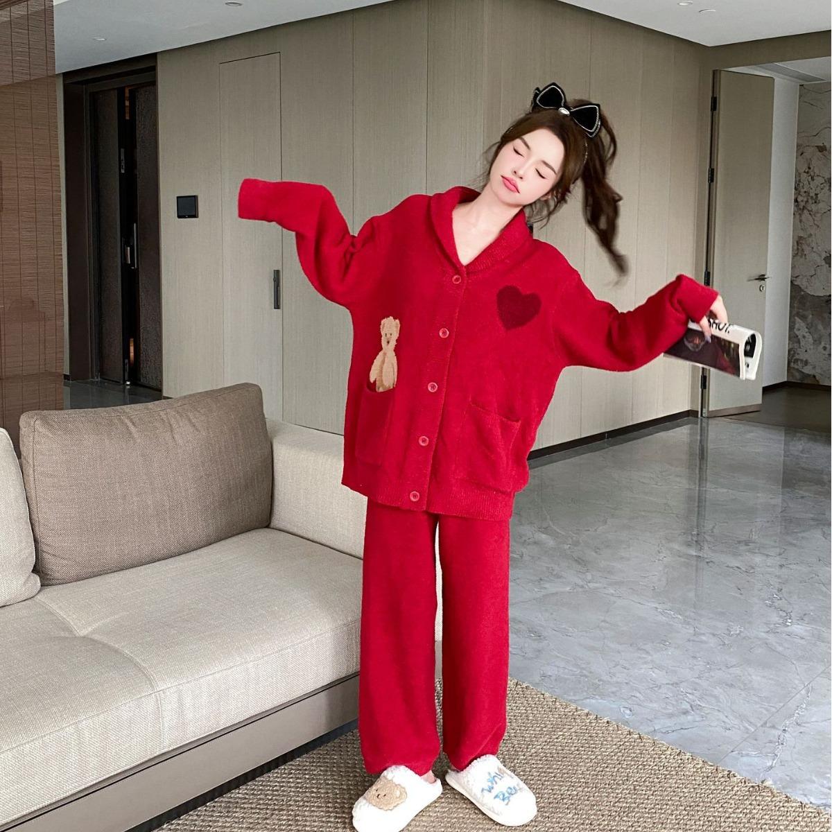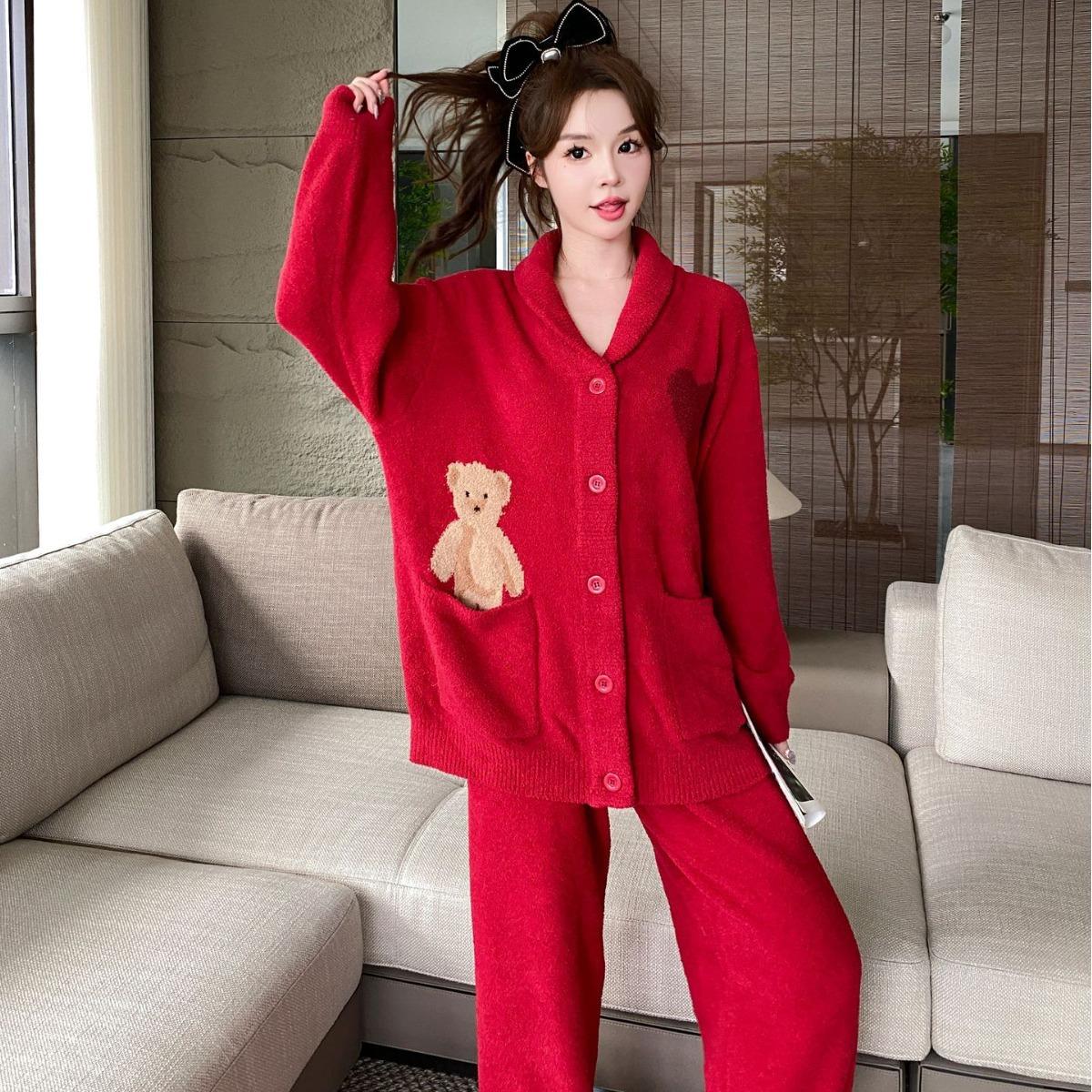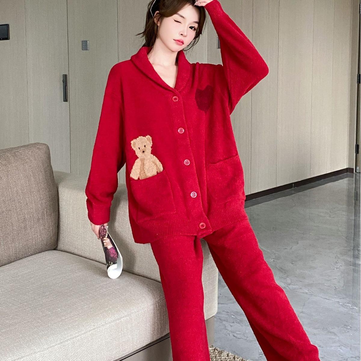 Pijama de pareja de osos de dibujos animados para mujer, de medio terciopelo, otoño e invierno, nuevo cárdigan rojo, ropa exterior cálida para hombre.