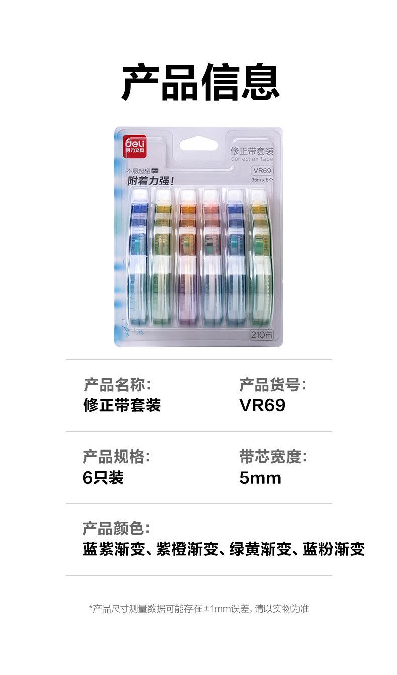Cinta correctora Deli Gradient, cinta correctora de gran capacidad para estudiantes, silenciosa y suave, para niñas de secundaria, color de alta calidad.